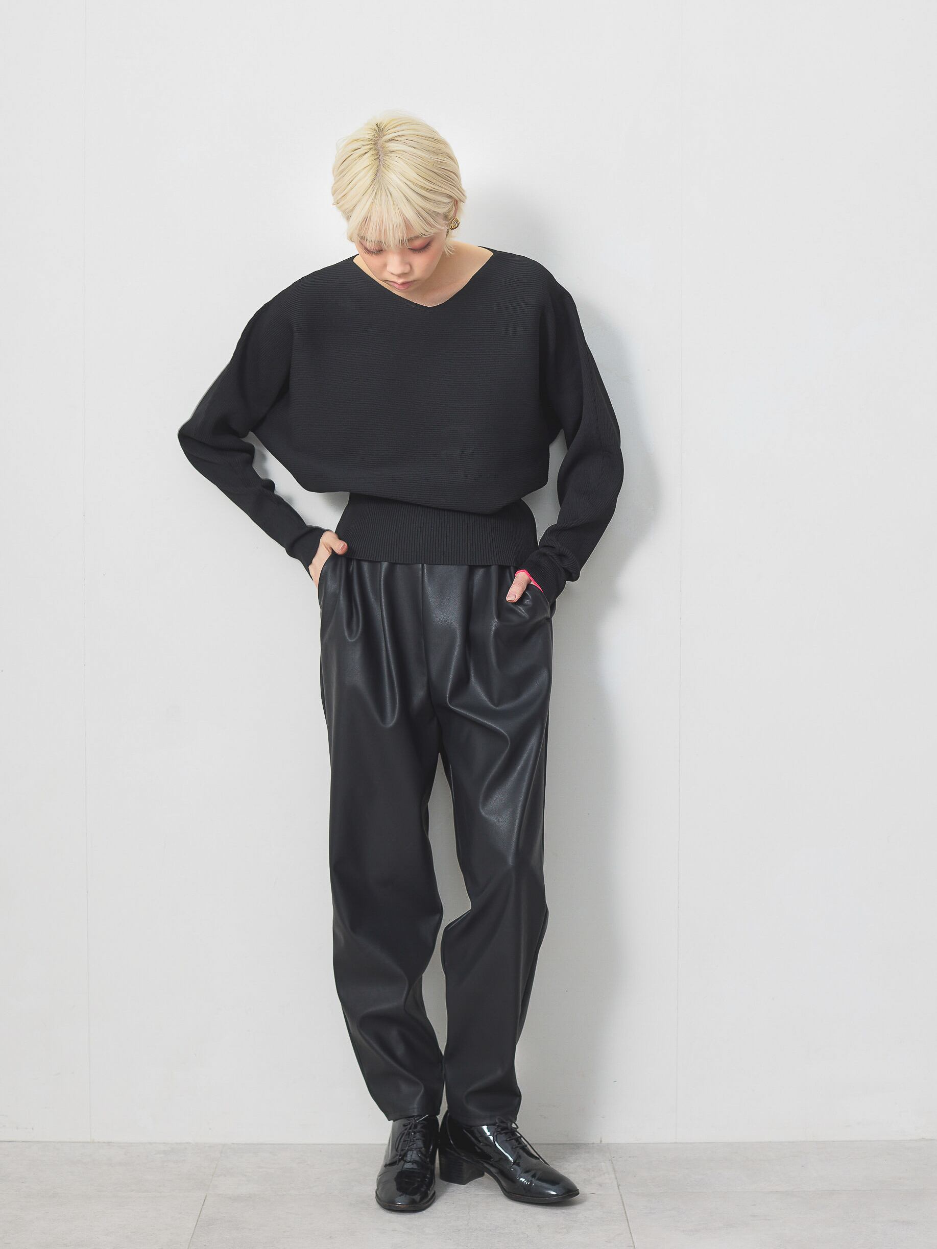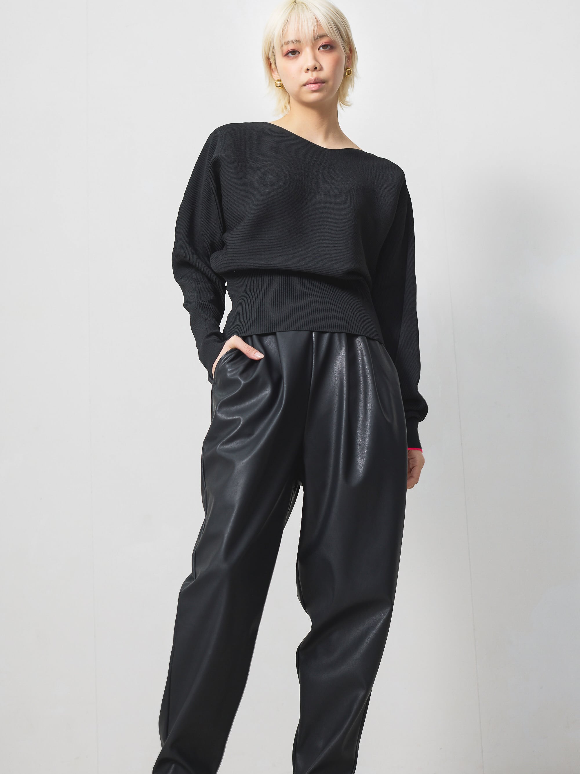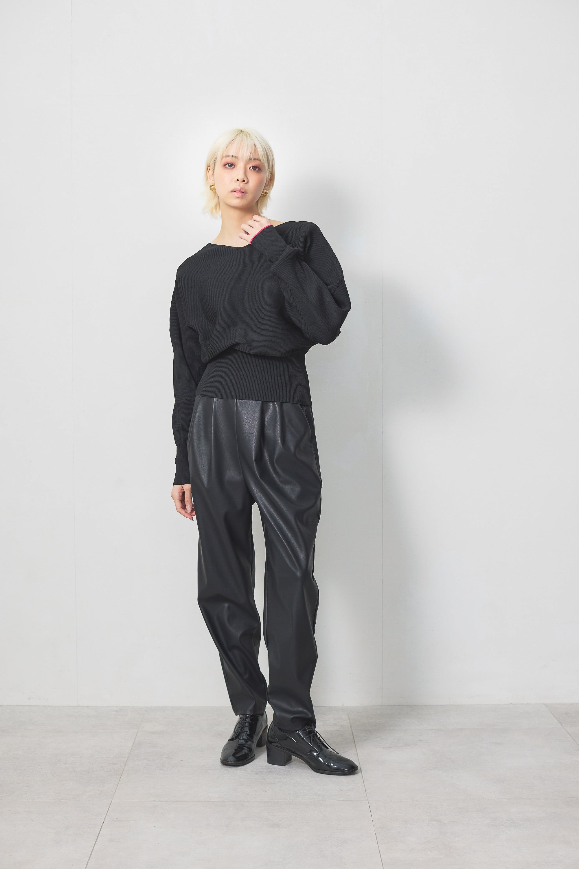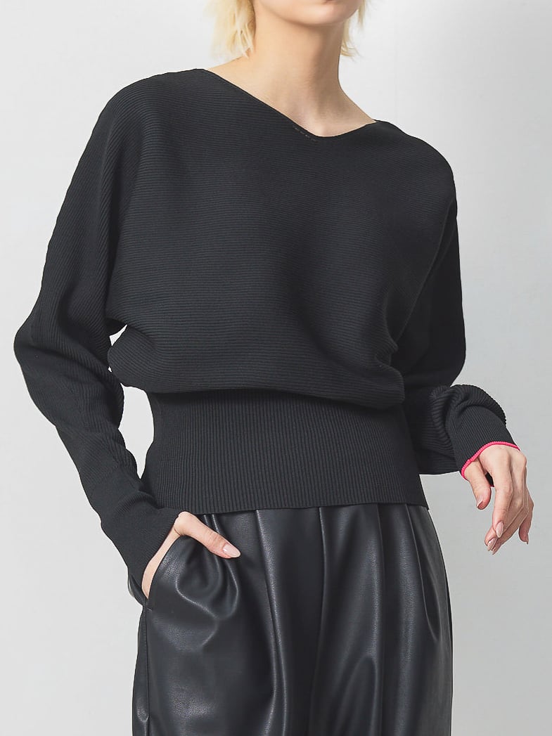Peリブ ドルマンスリーブニットプルオーバー / ブラック
