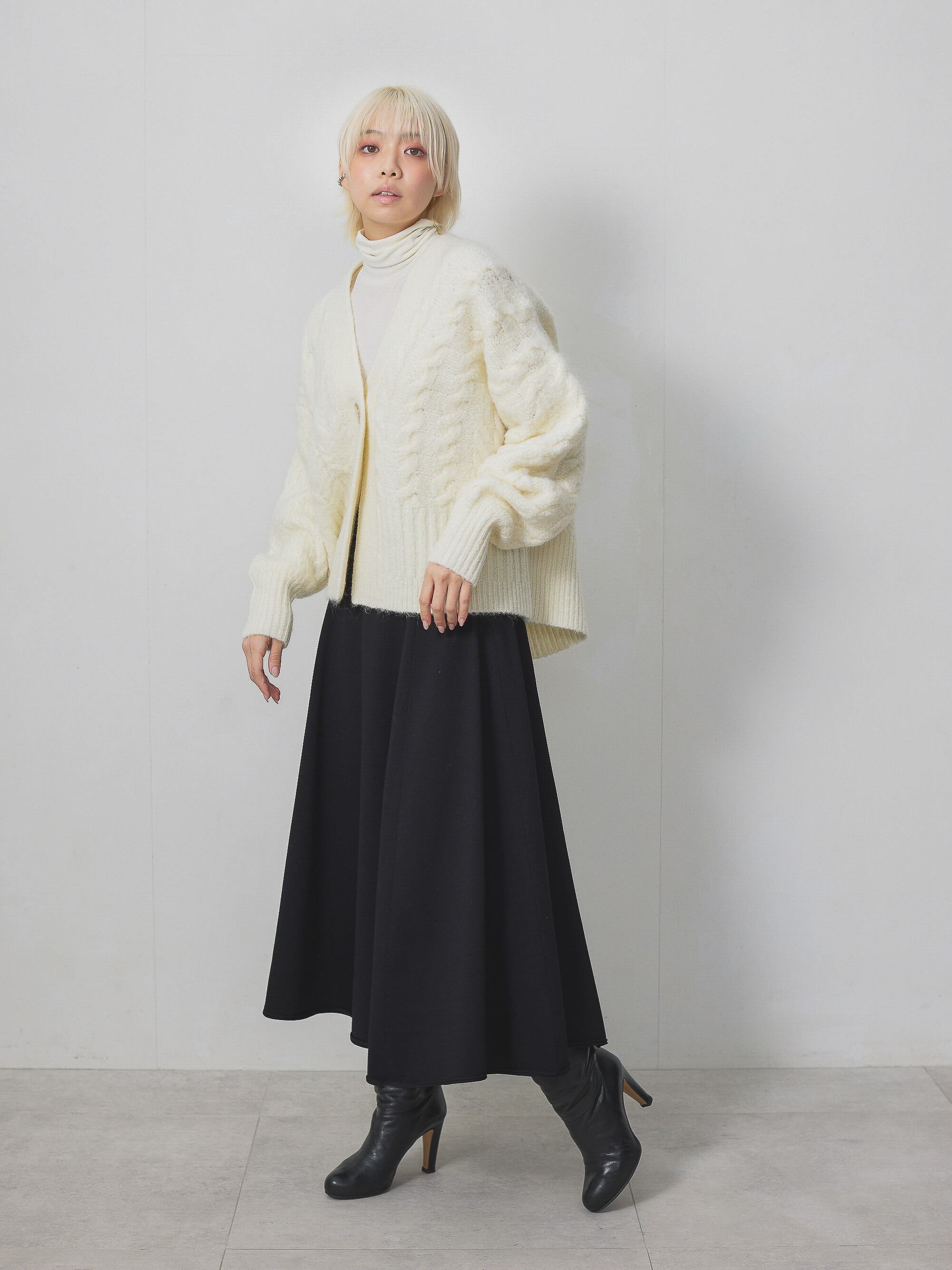 ストレッチRy/Pe ニットフレアロングスカートS / ブラック