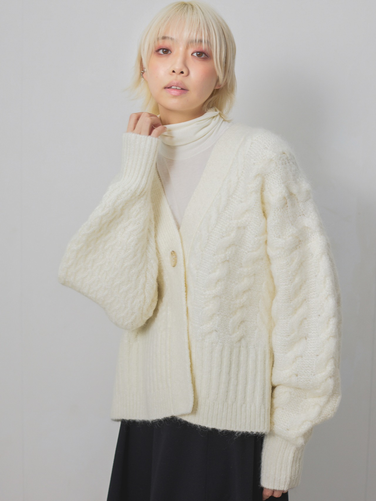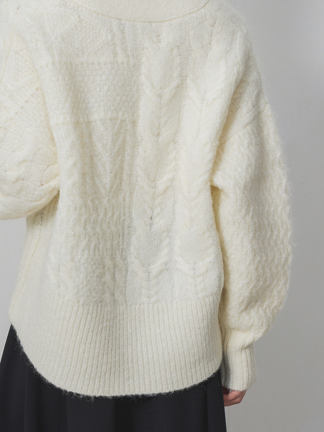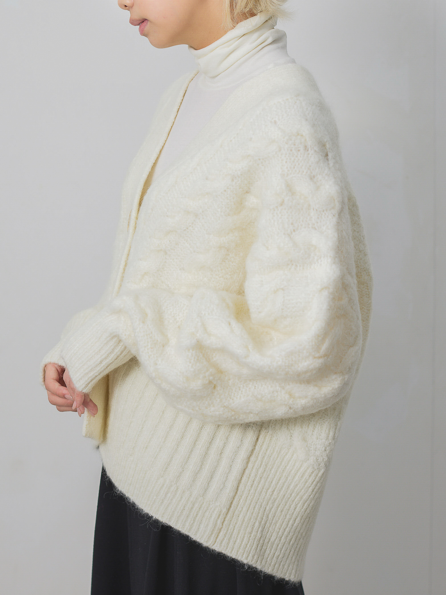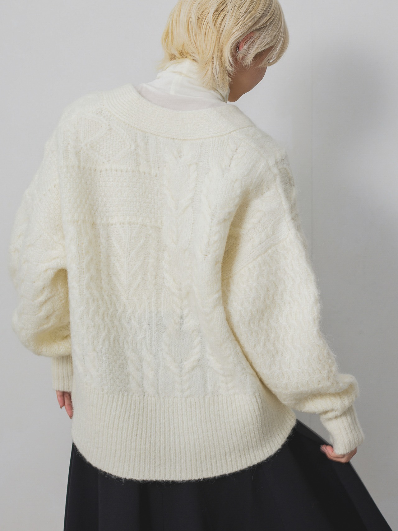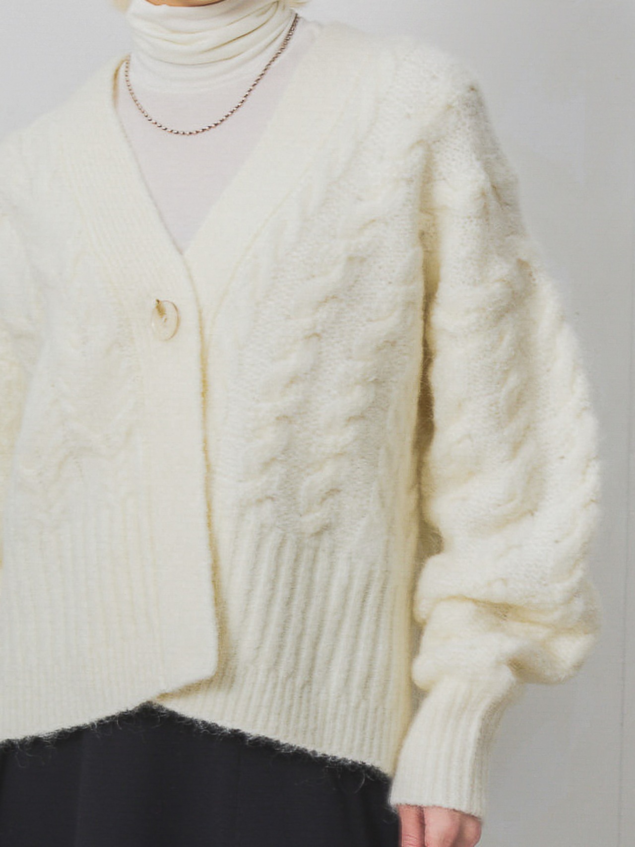 モヘア混ケーブル柄BIGニットカーディガン / ホワイト