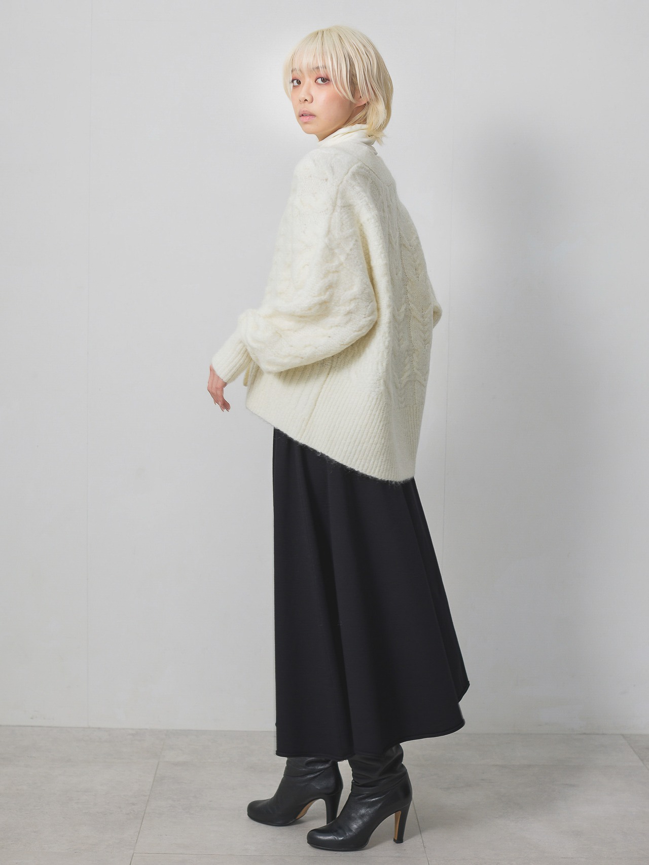 カジュアルになりがちなケーブルニットも
