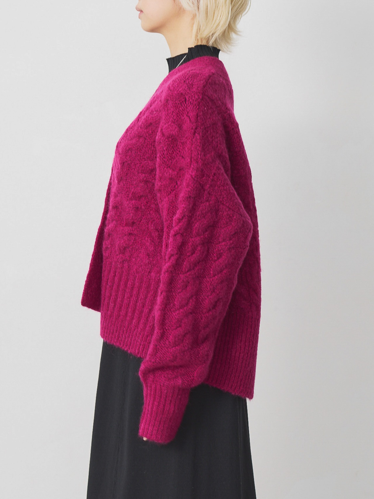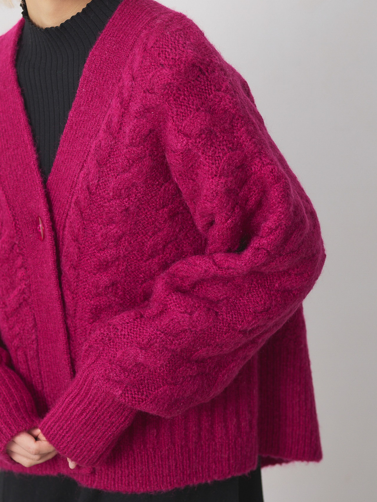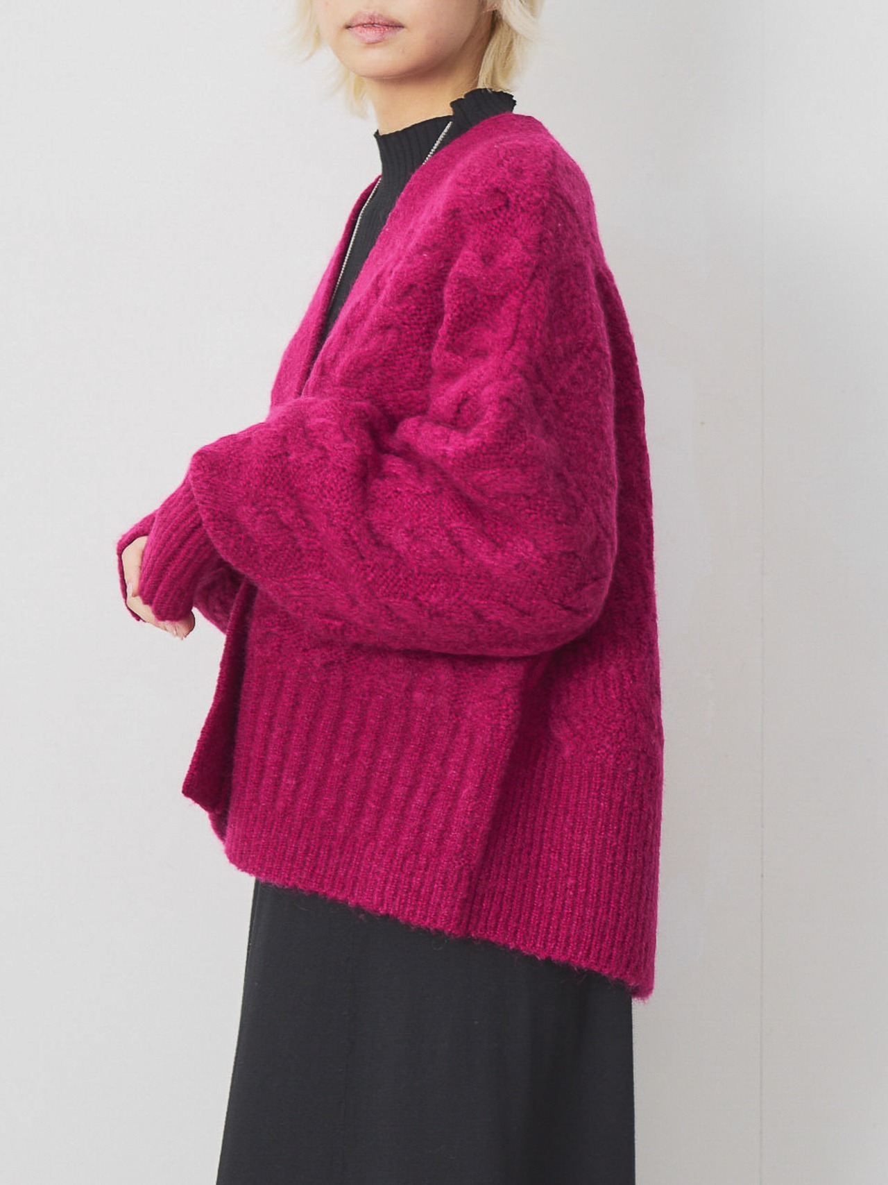 モヘア混ケーブル柄BIGニットカーディガン / ベリーピンク