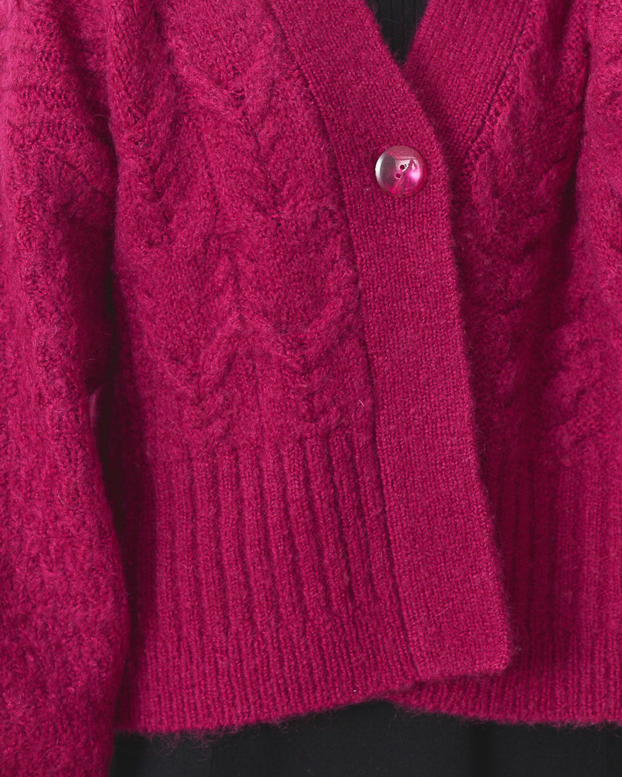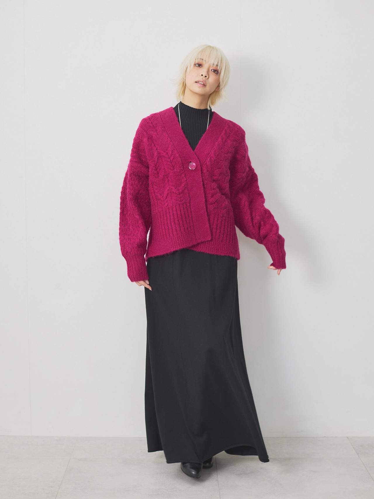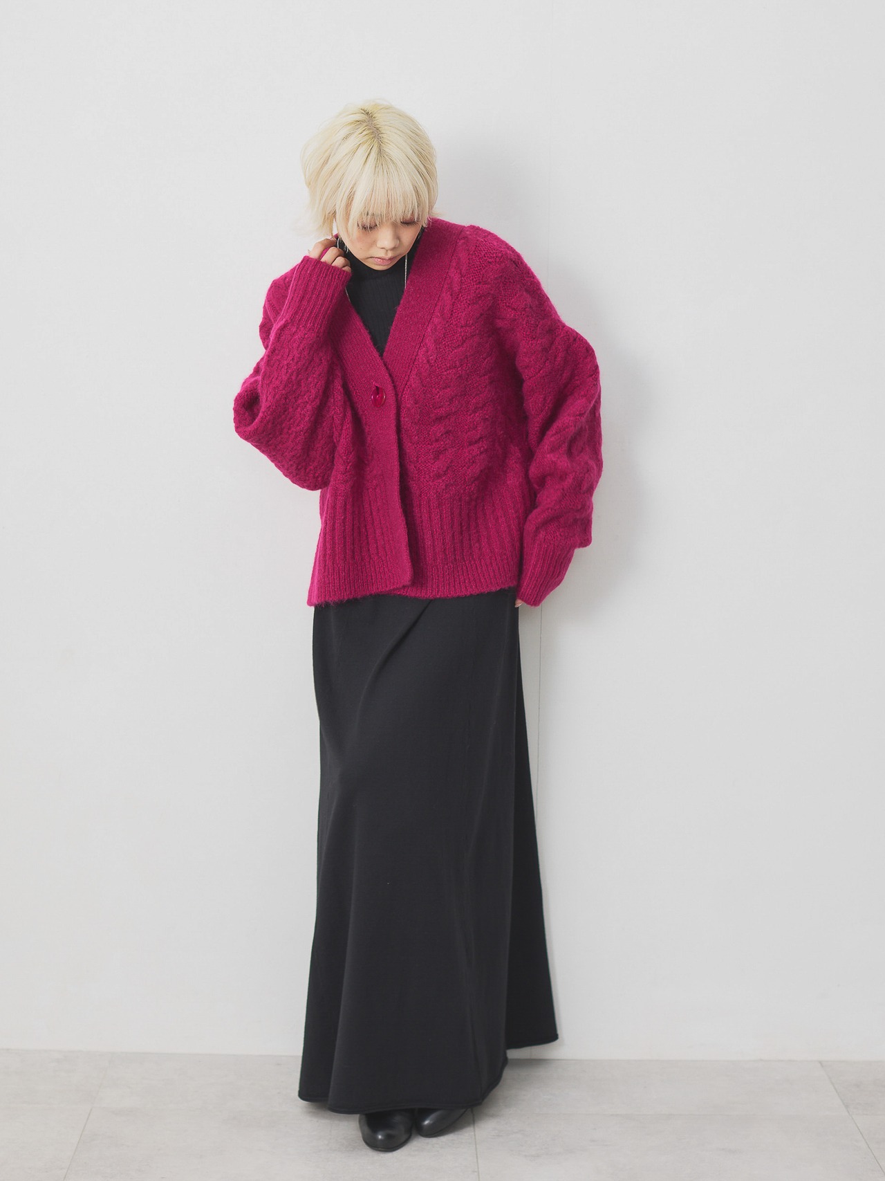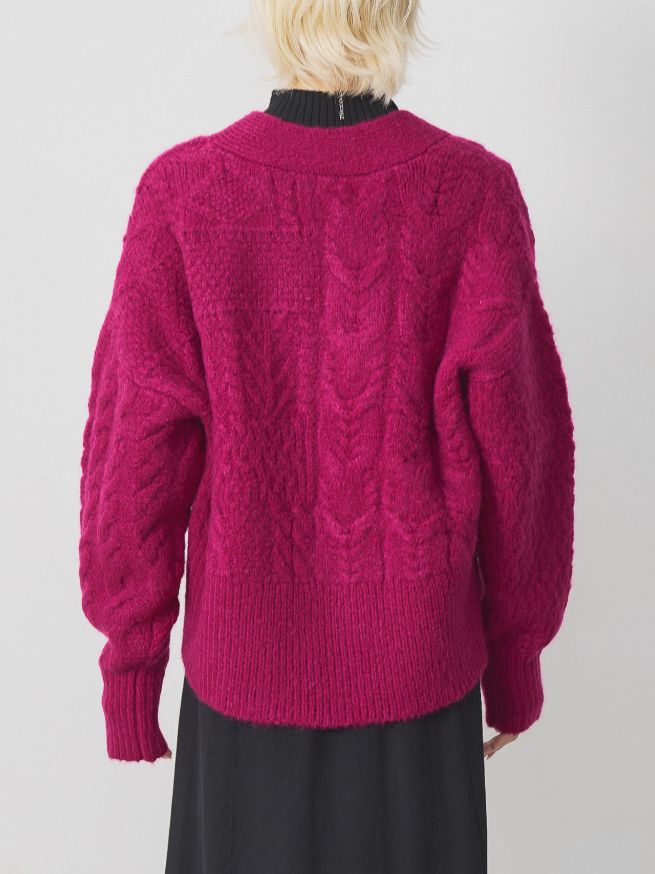 モヘア混ケーブル柄BIGニットカーディガン / ベリーピンク