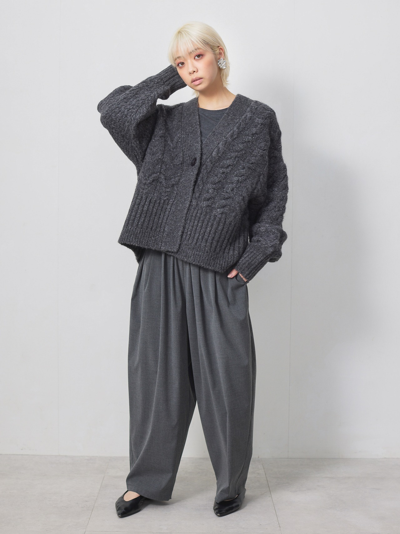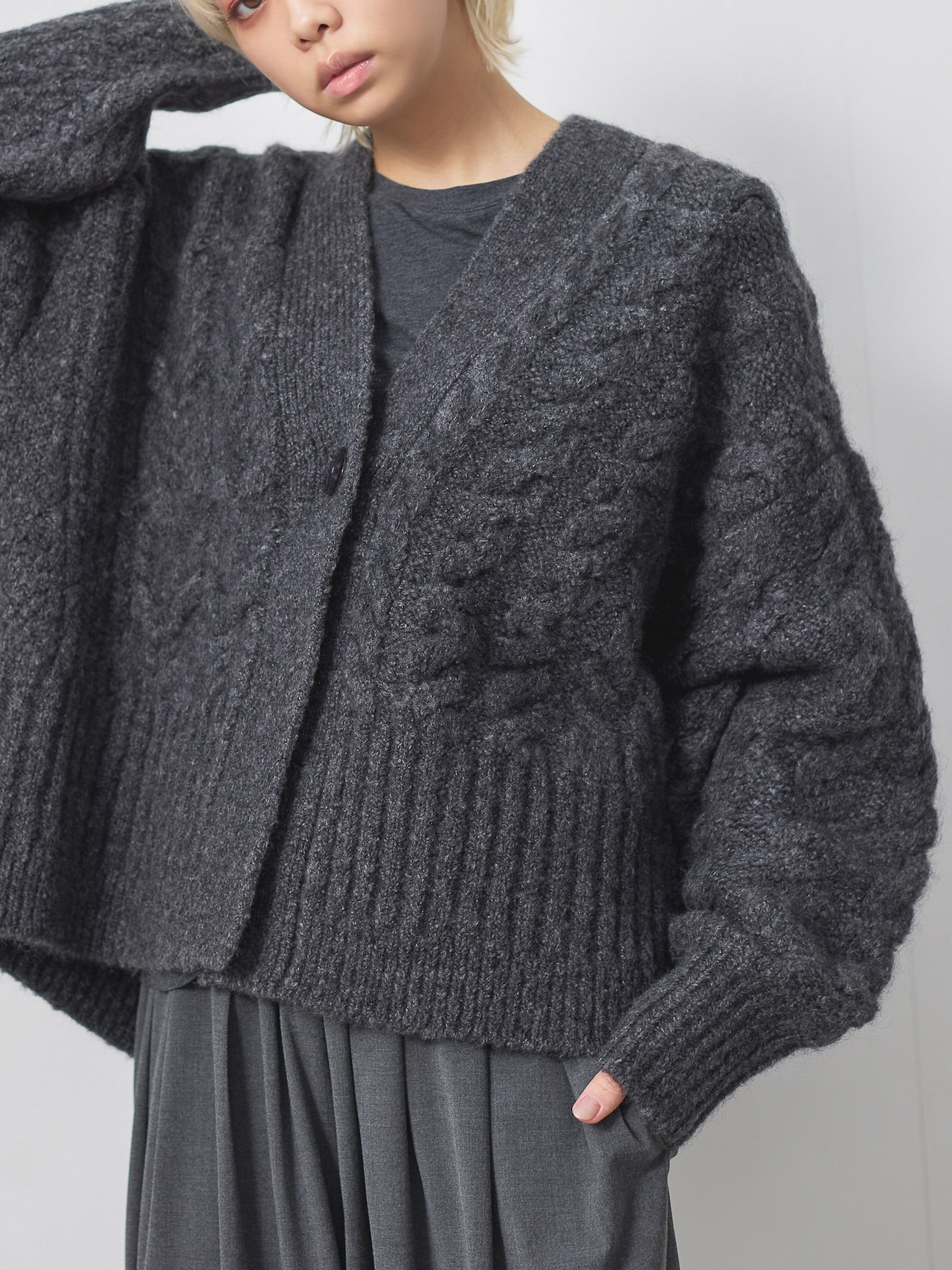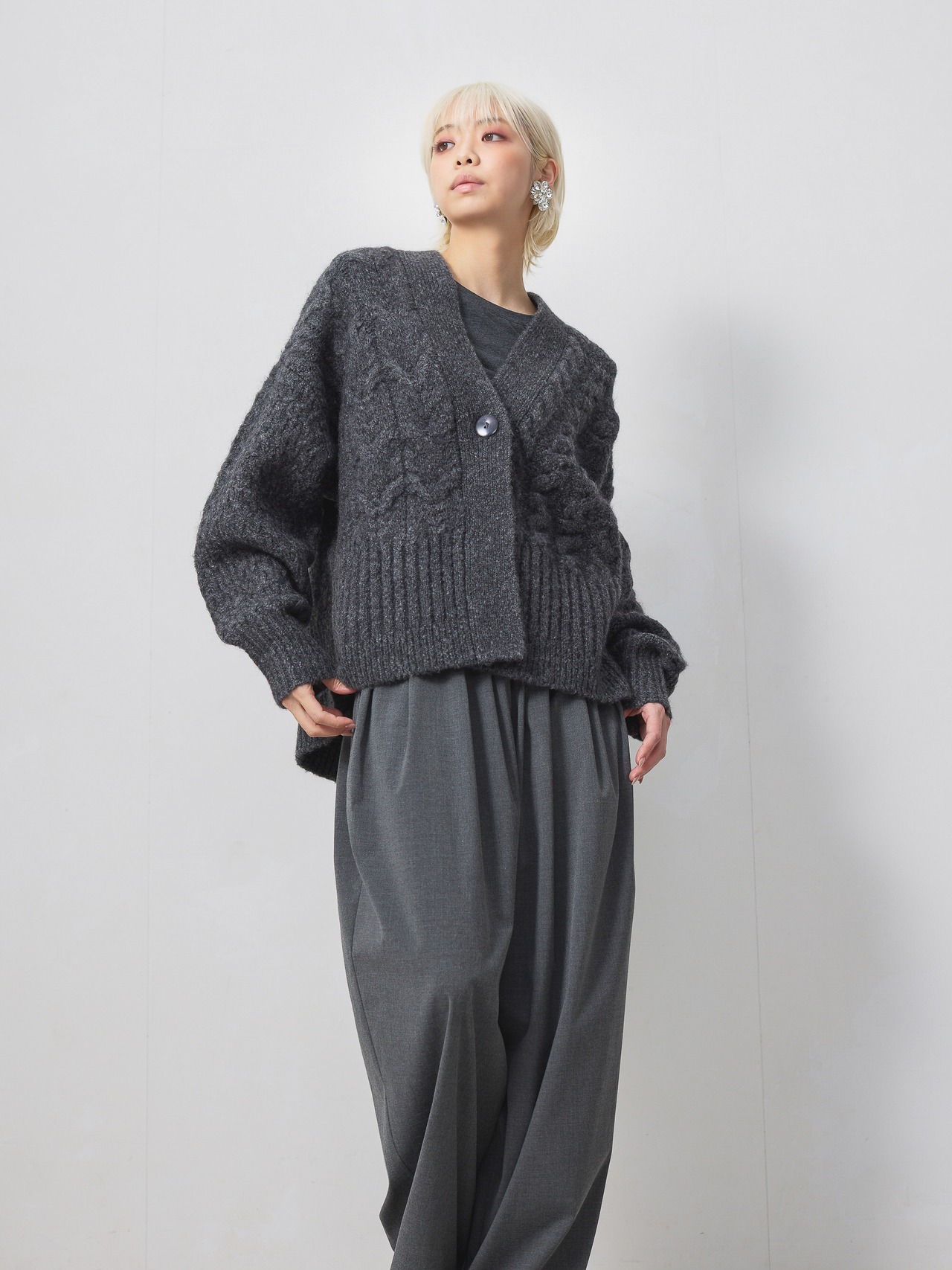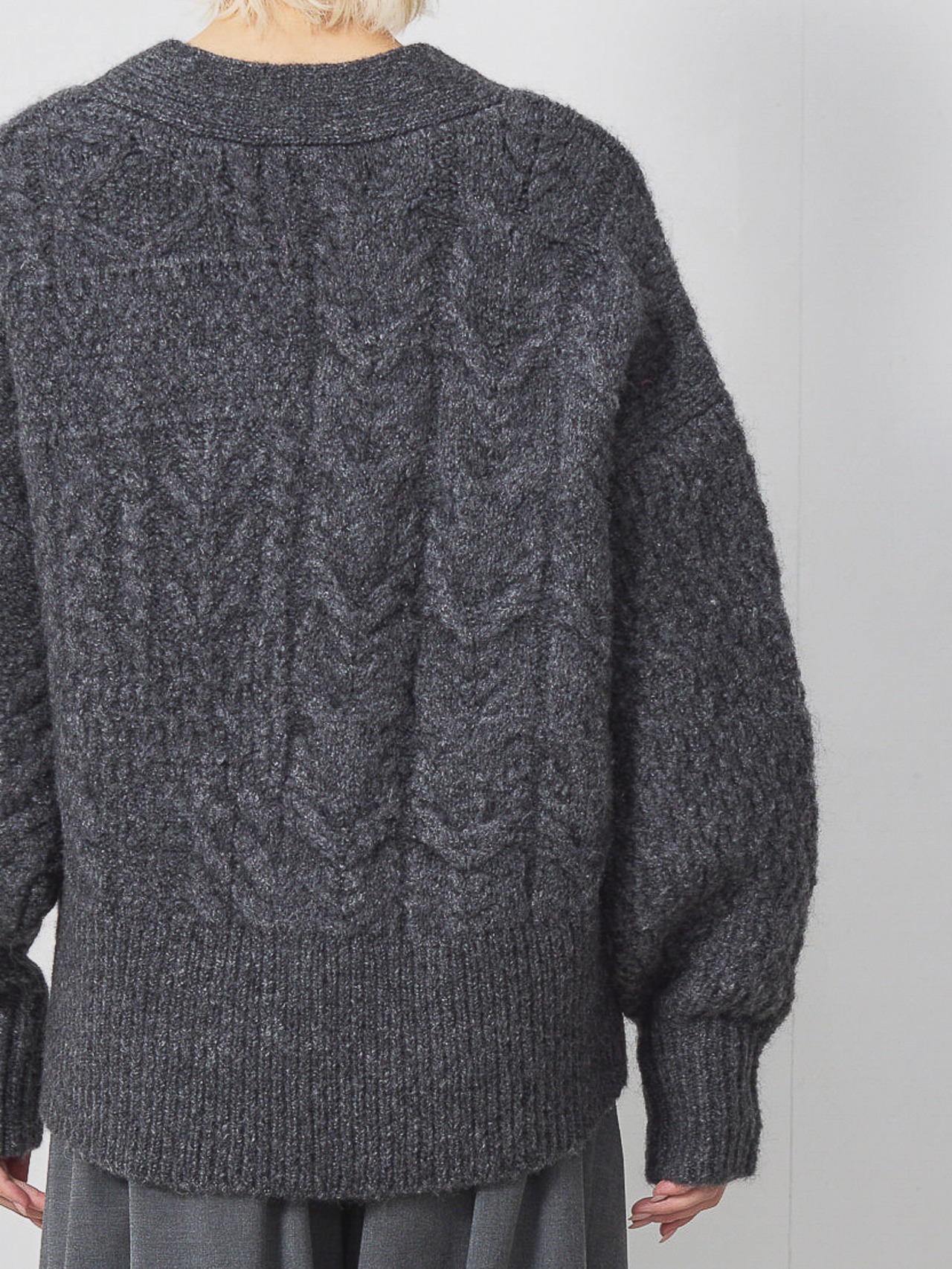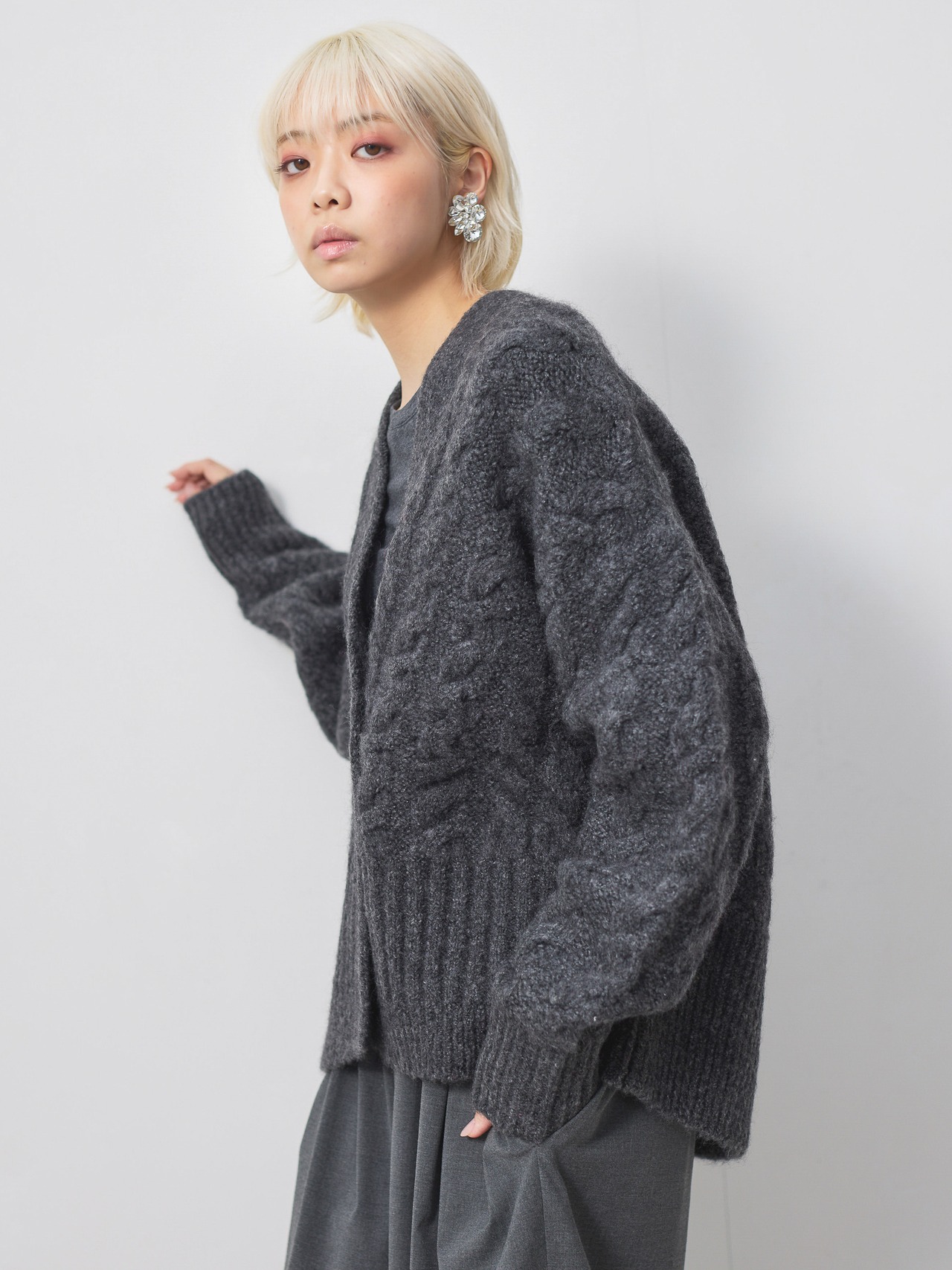 モヘア混ケーブル柄BIGニットカーディガン / TOPグレー