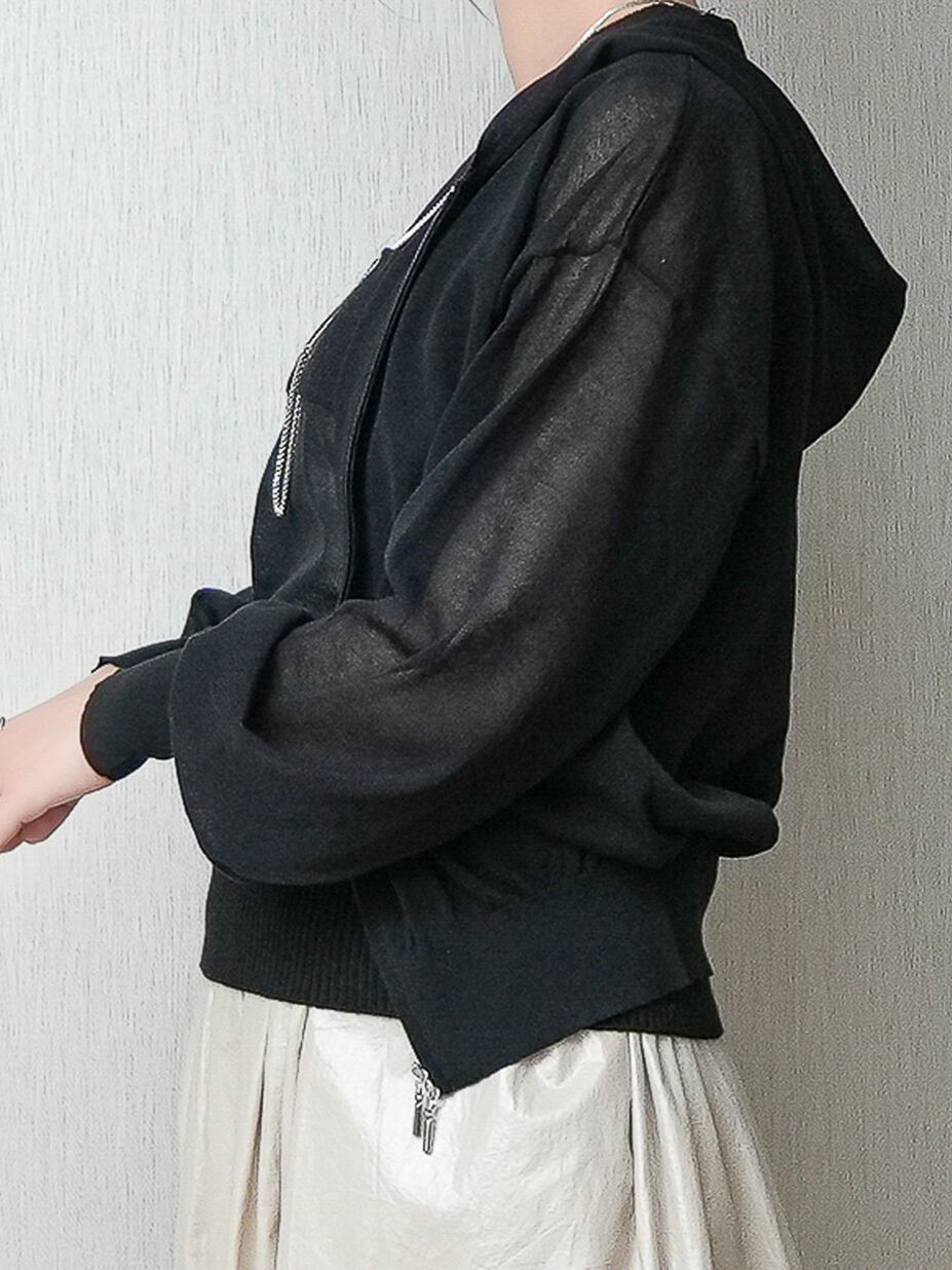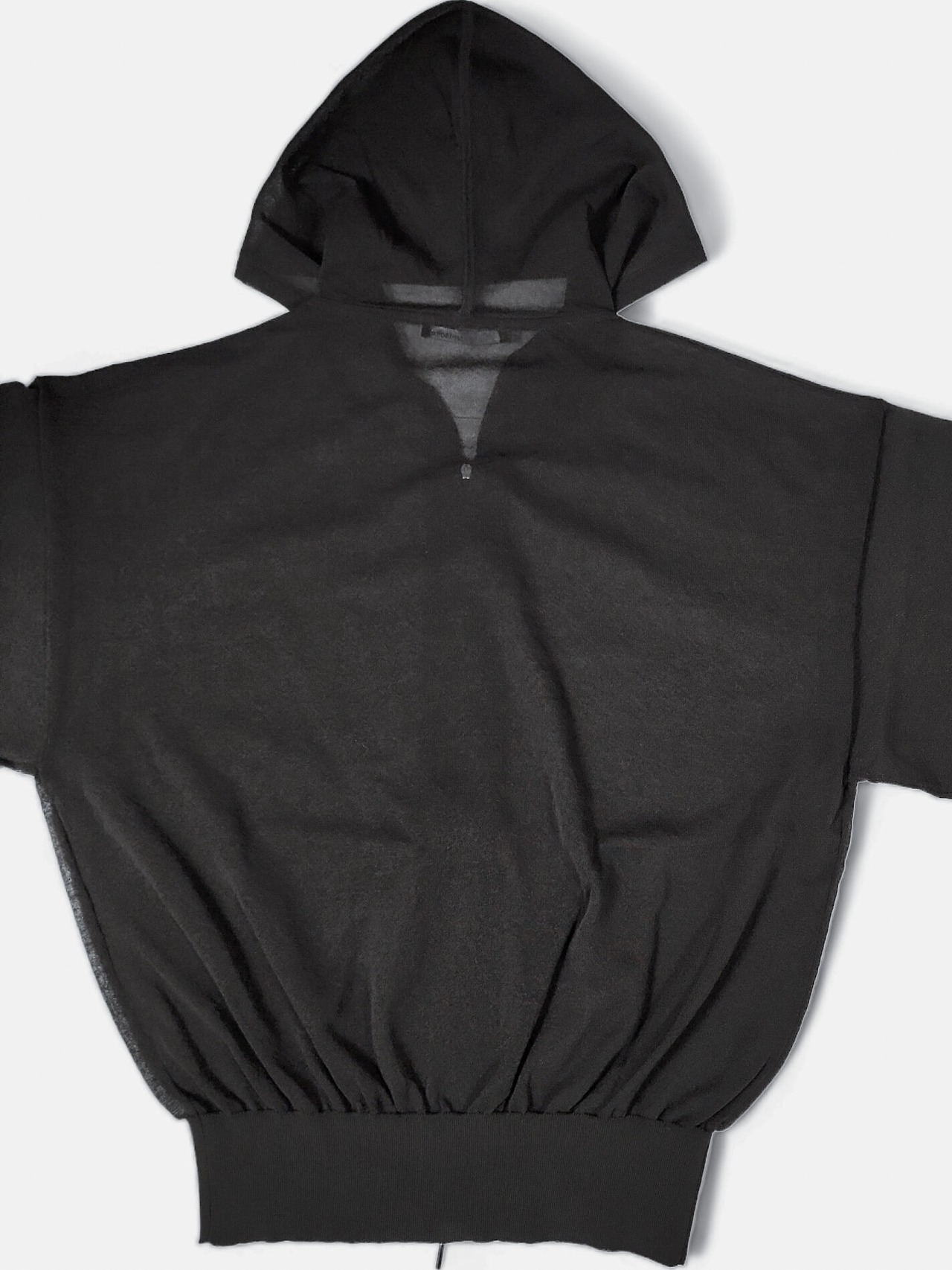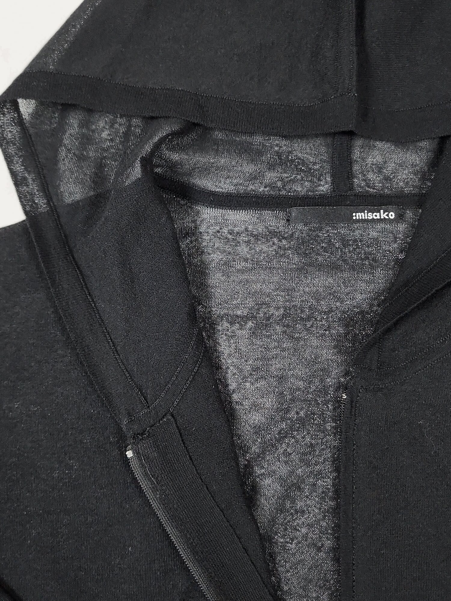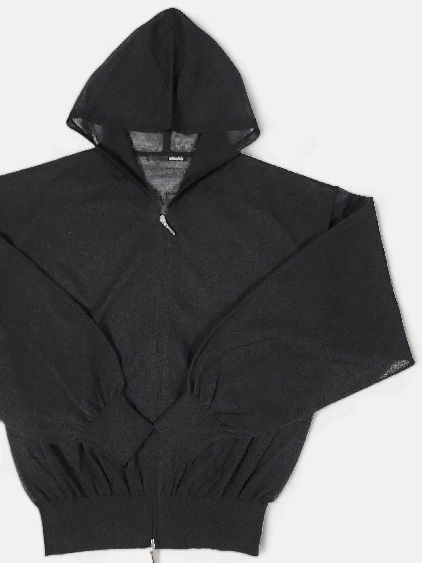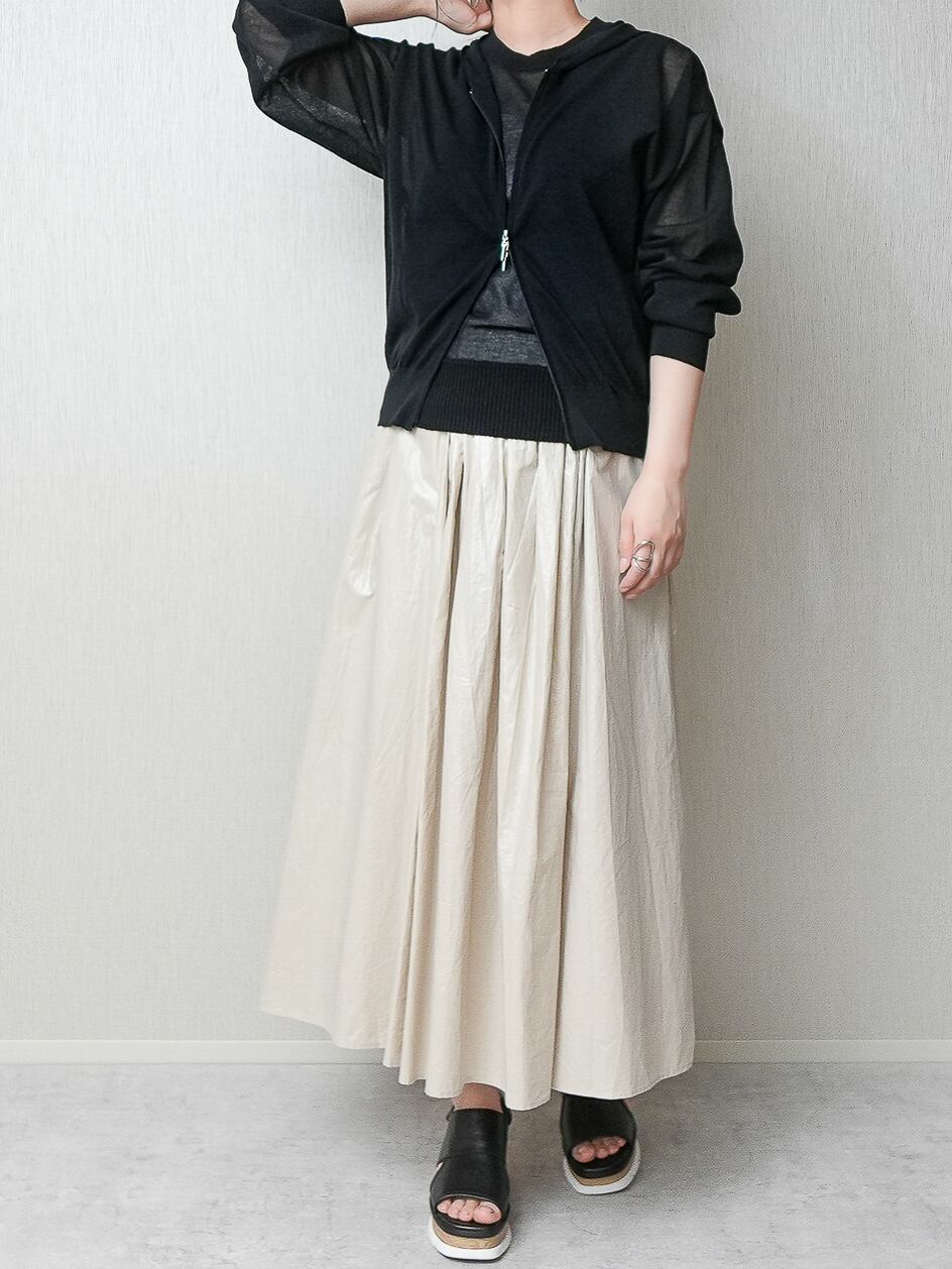 少し張りのあるシアーな素材感が特徴の、ジップアップニットパーカーです。