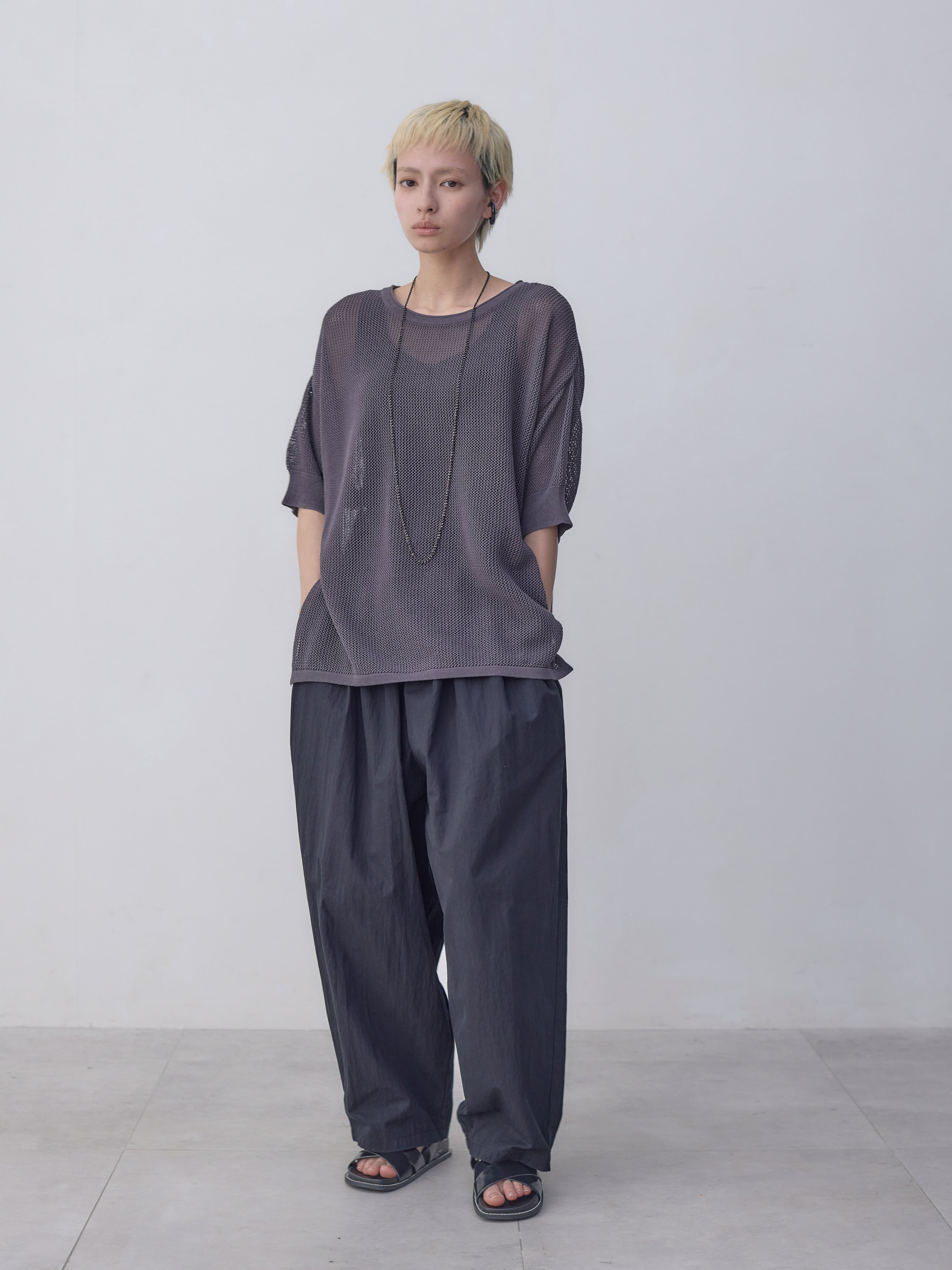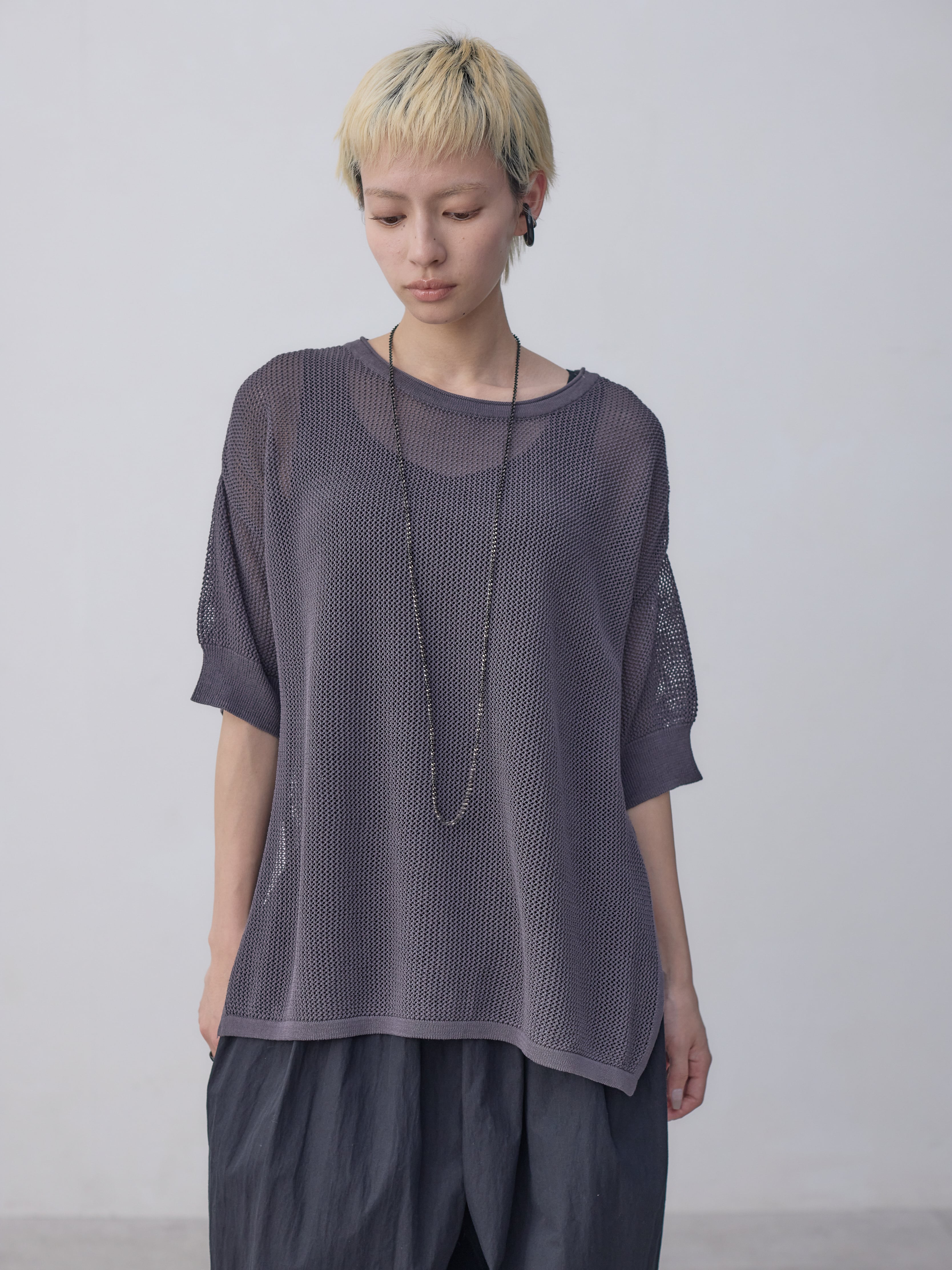 メッシュコットンゆったりニットプルオーバー / ダークグレー
