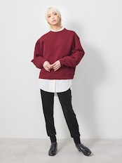 同素材のトップスも展開しているので、セットアップでのコーディネートも可。