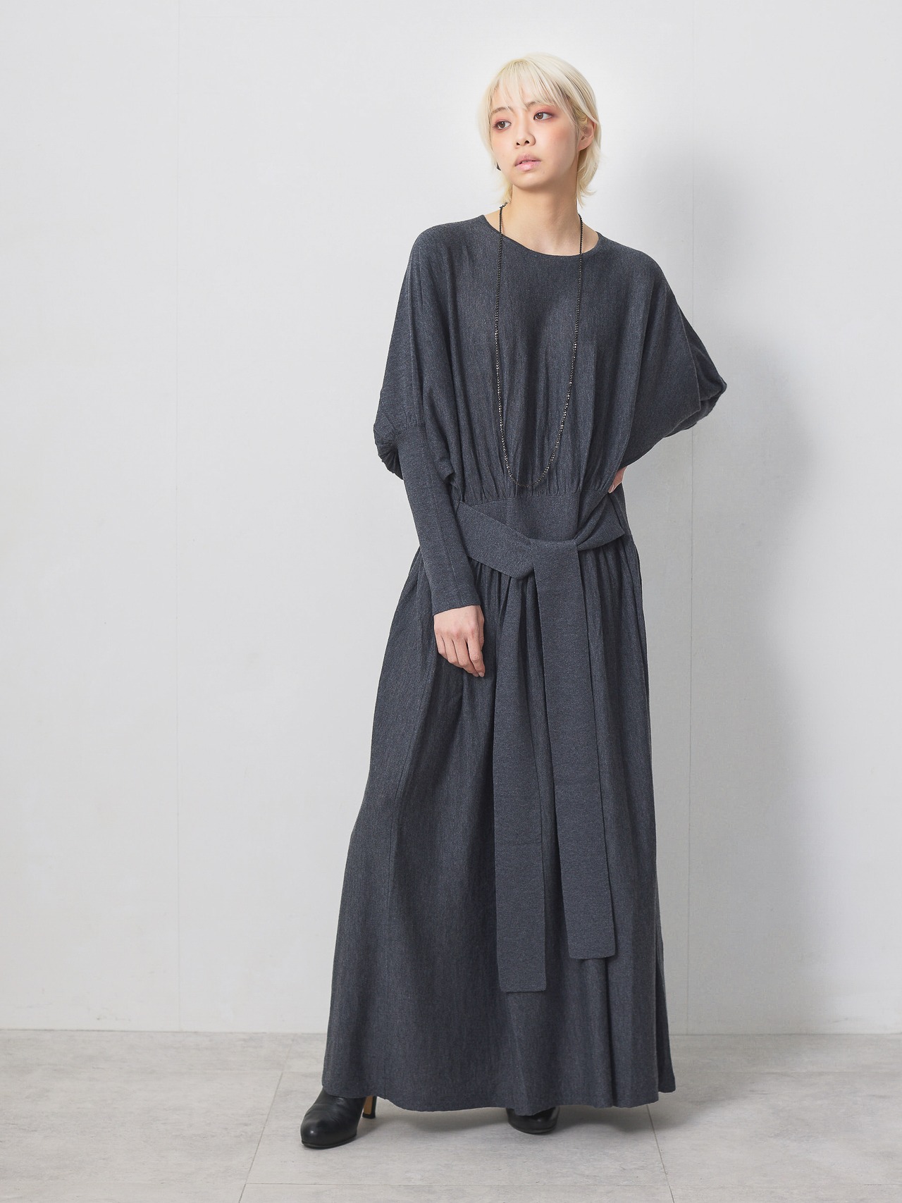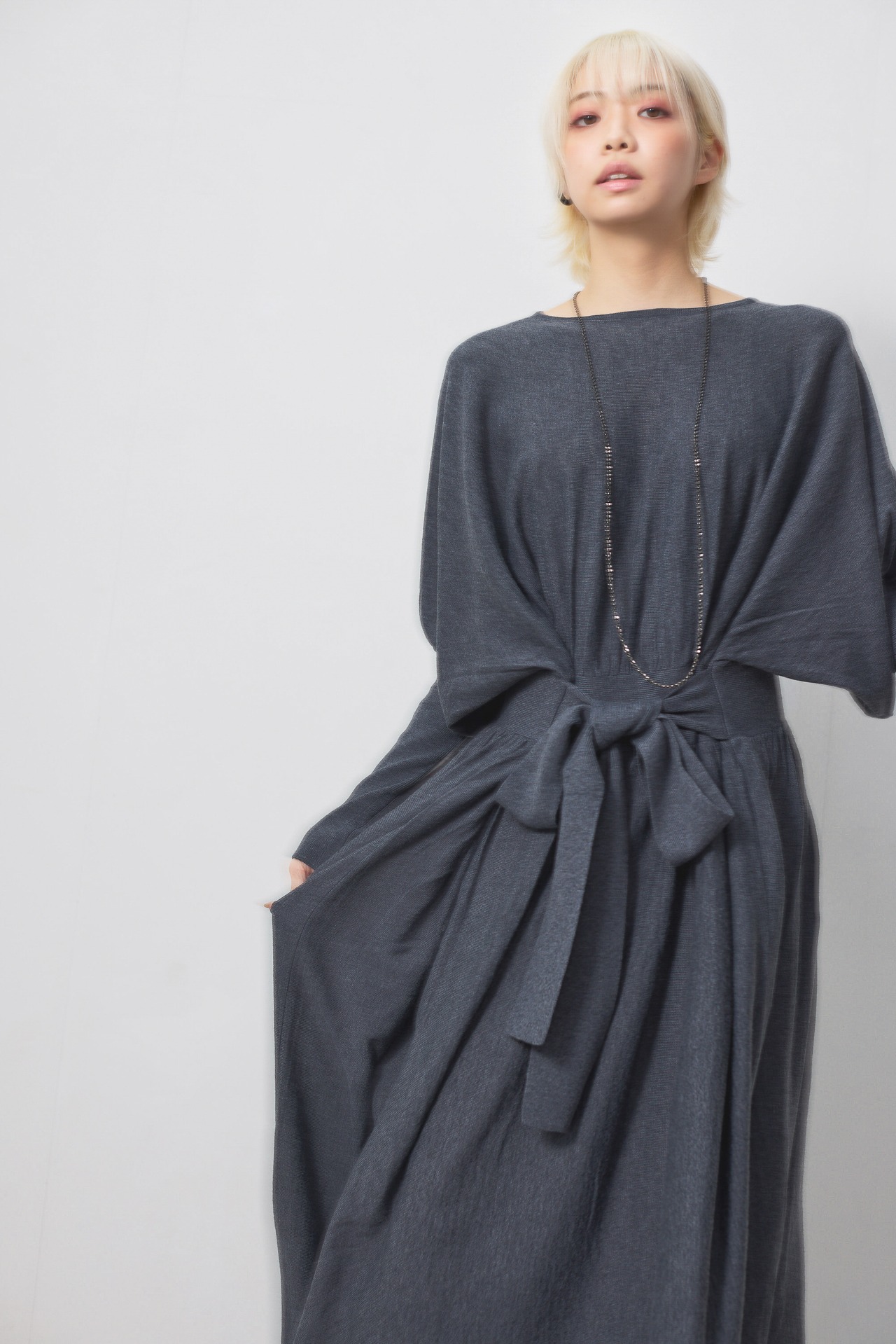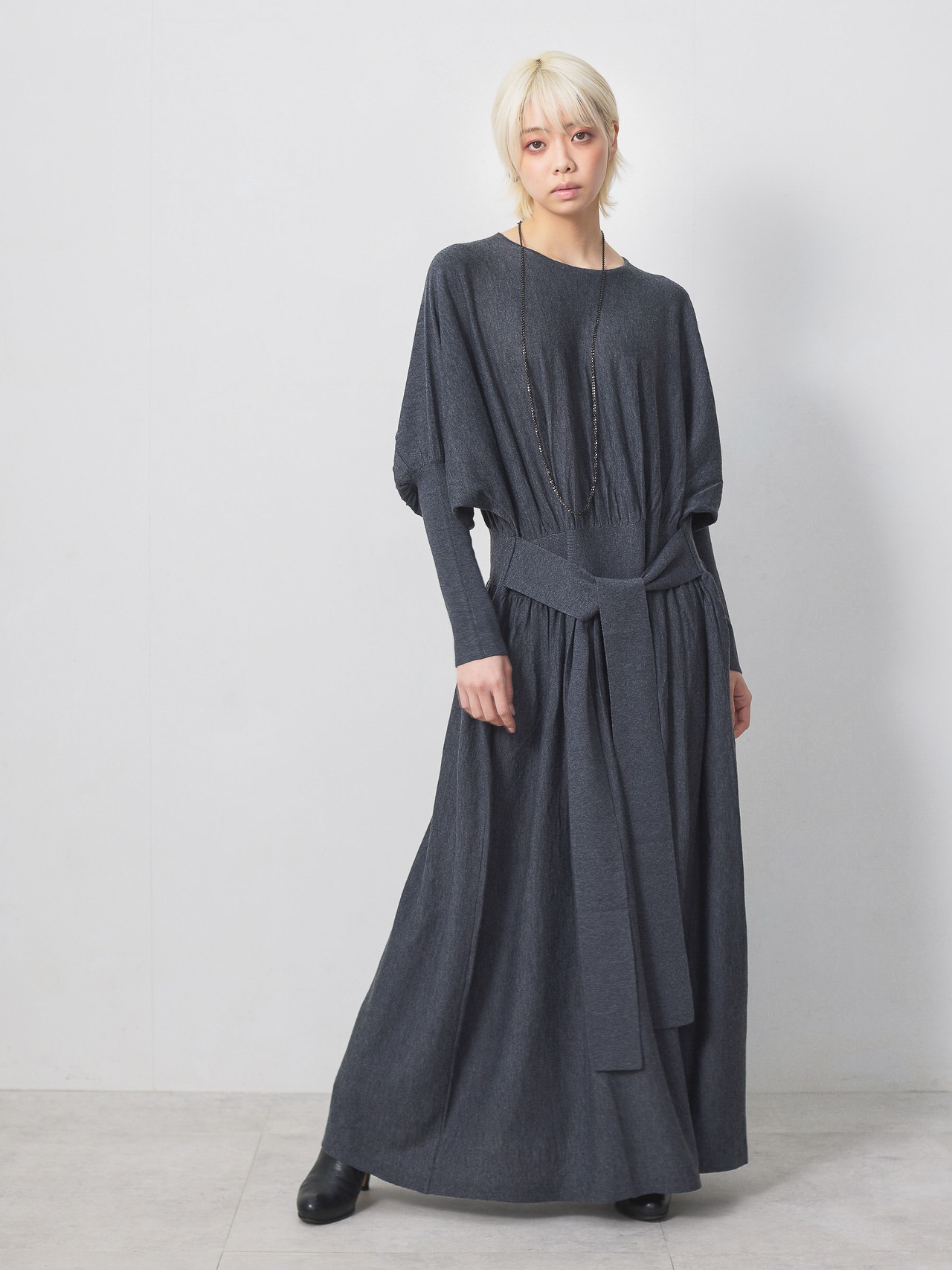 ゆったりとしたドレープシルエットが特徴のニットドレス。