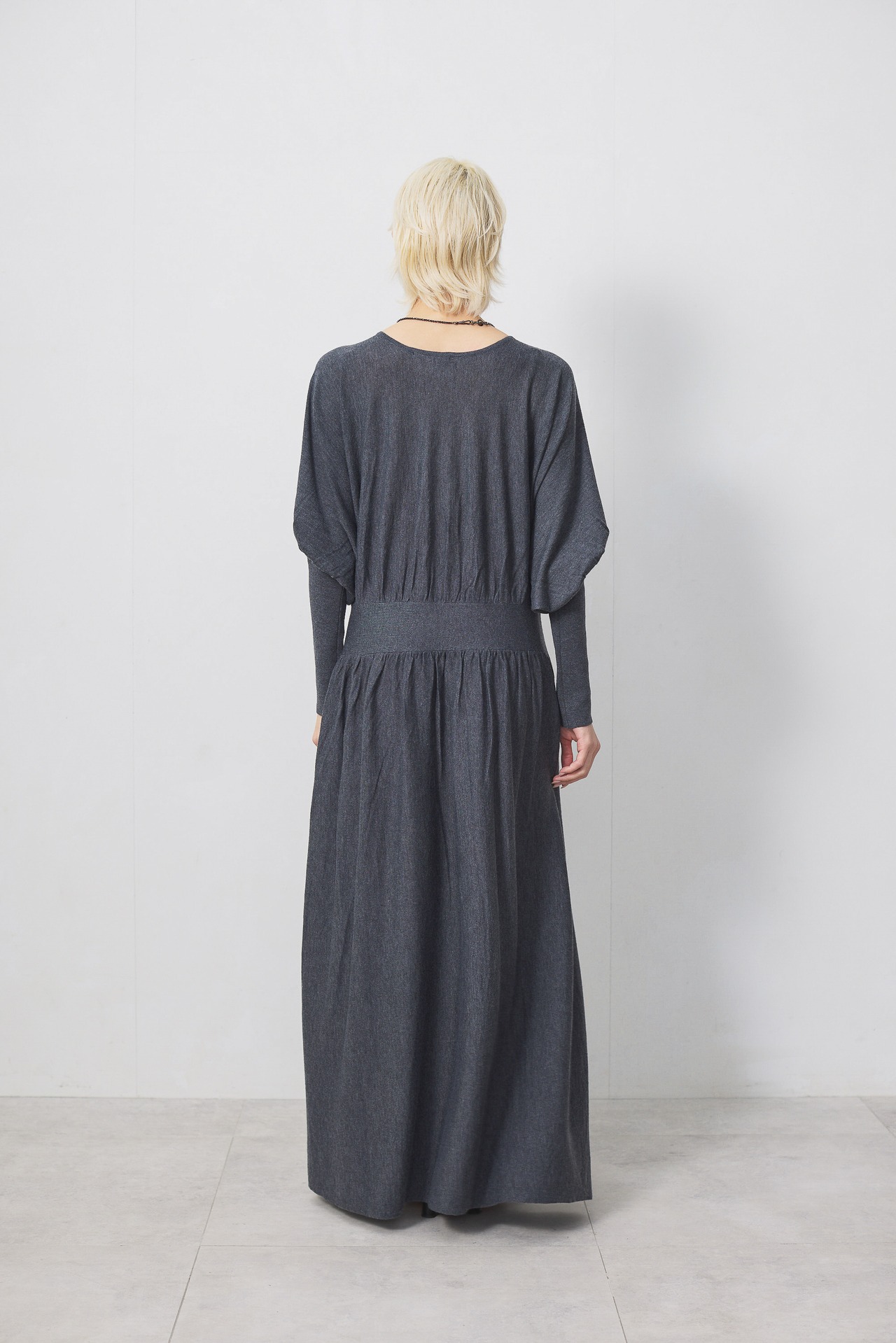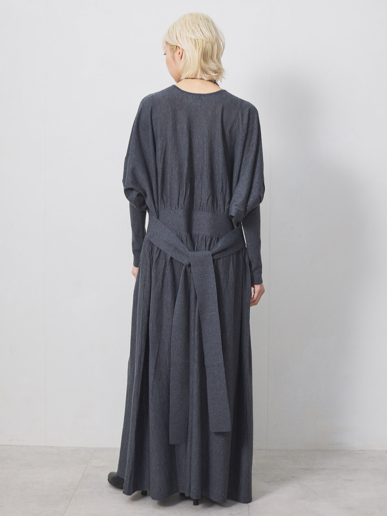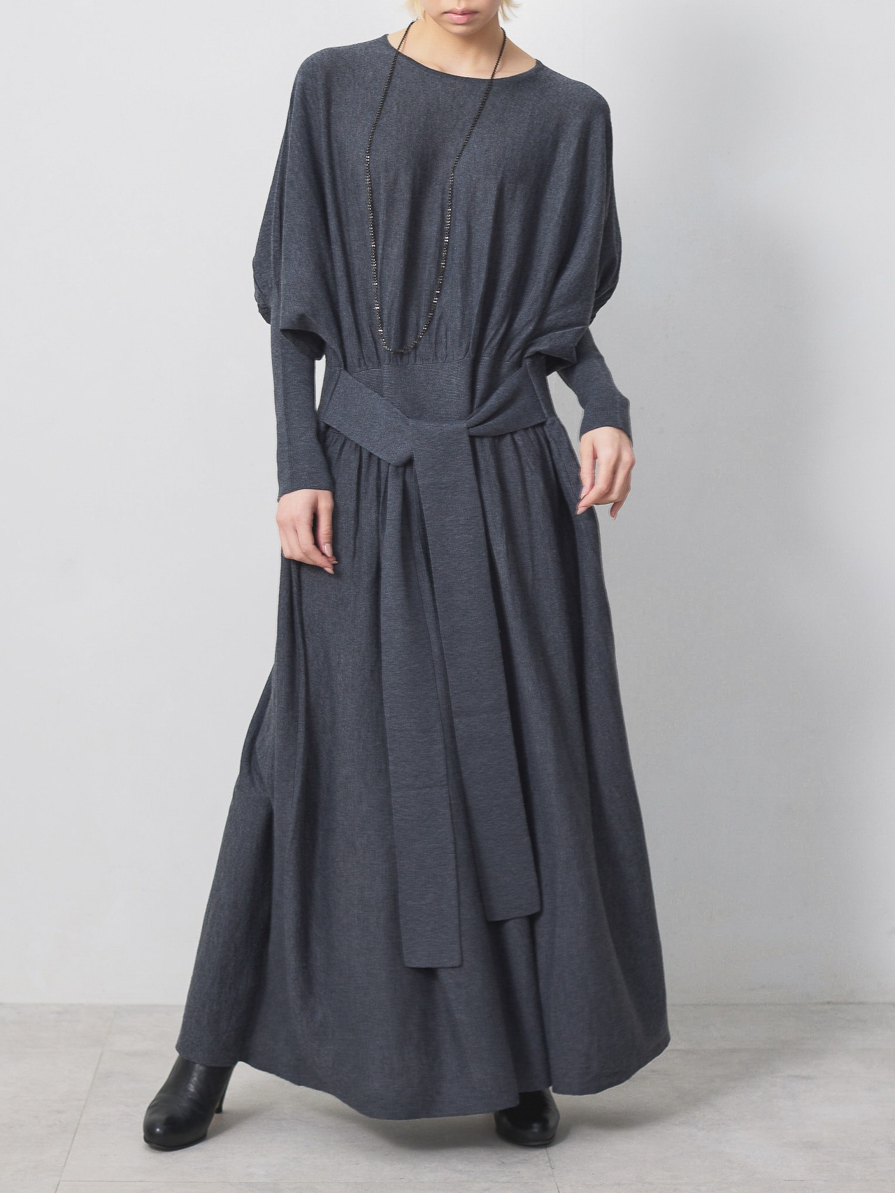 ゆったりとしたドレープシルエットが特徴のニットドレス。