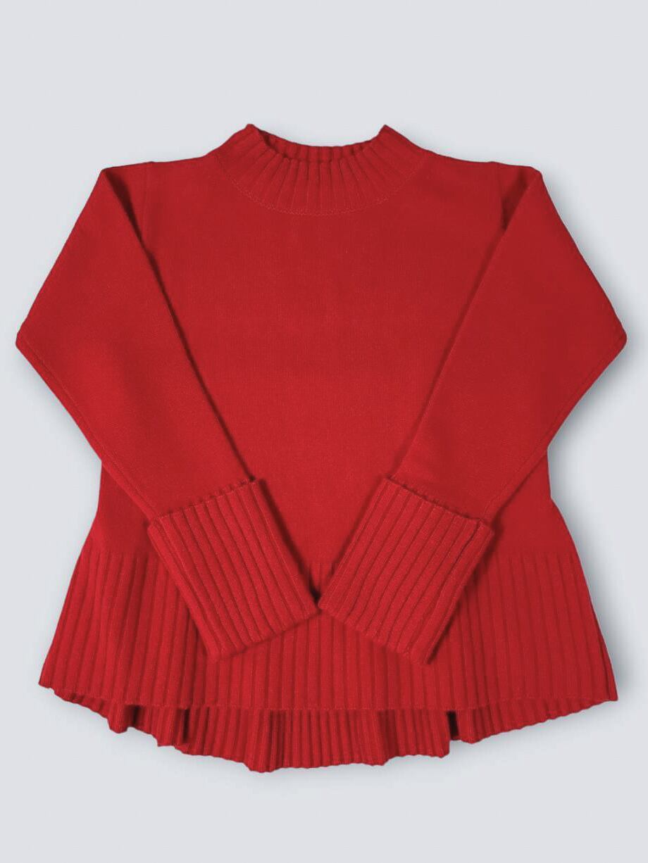 バックベルト付きニットプルオーバー / レッド