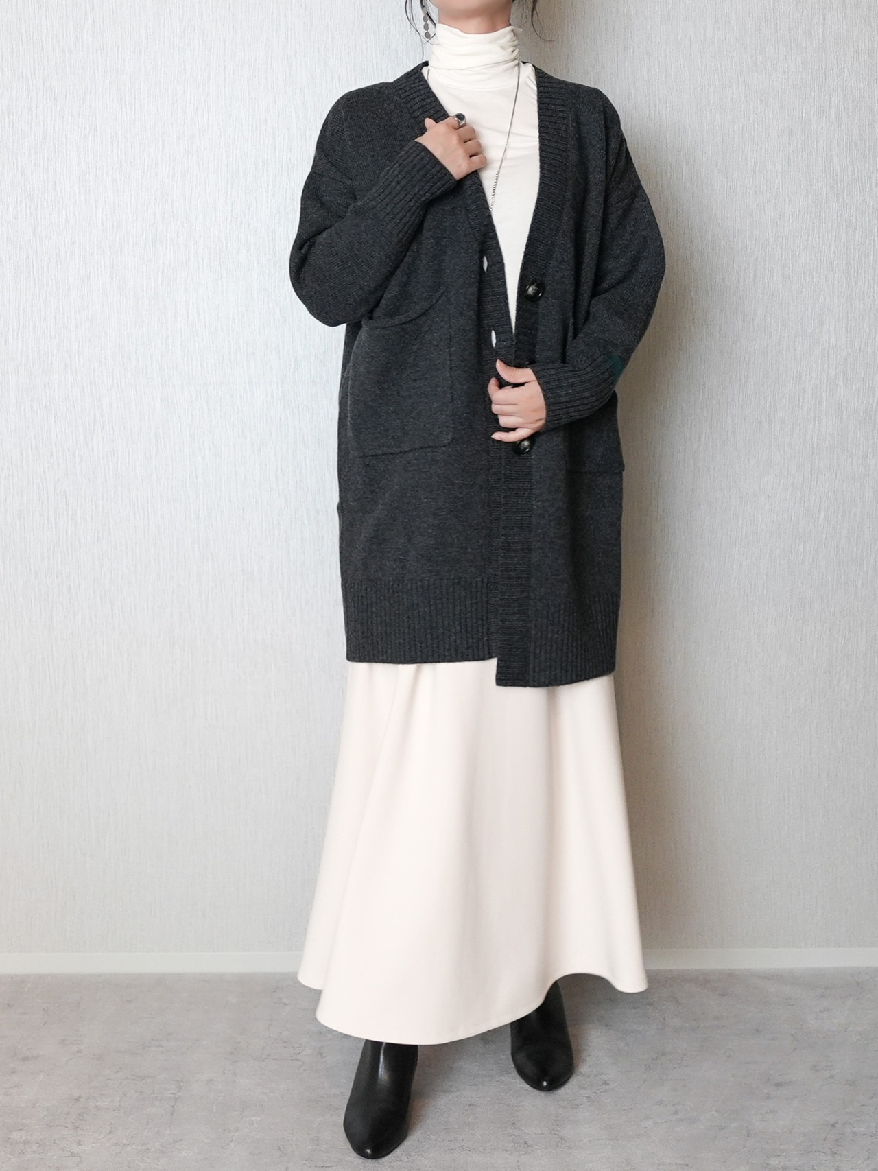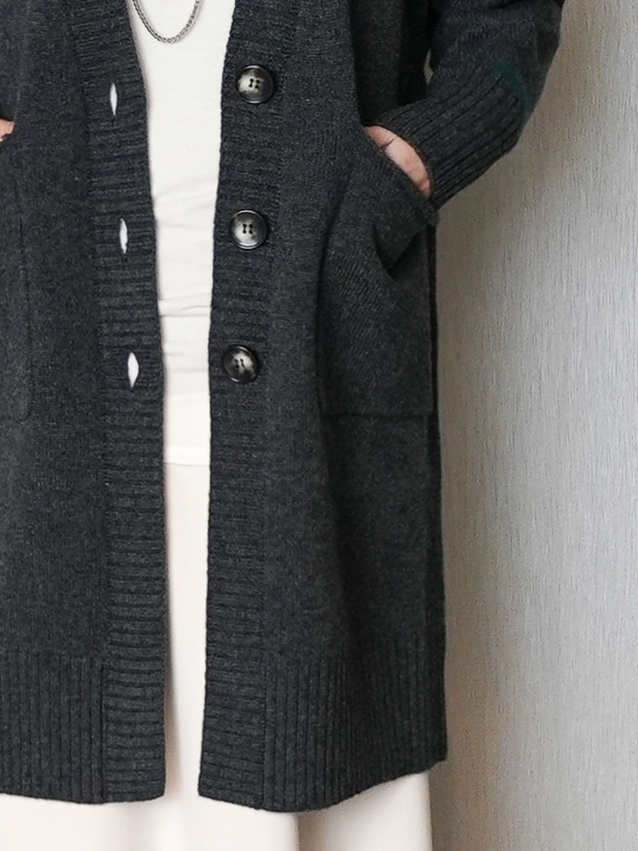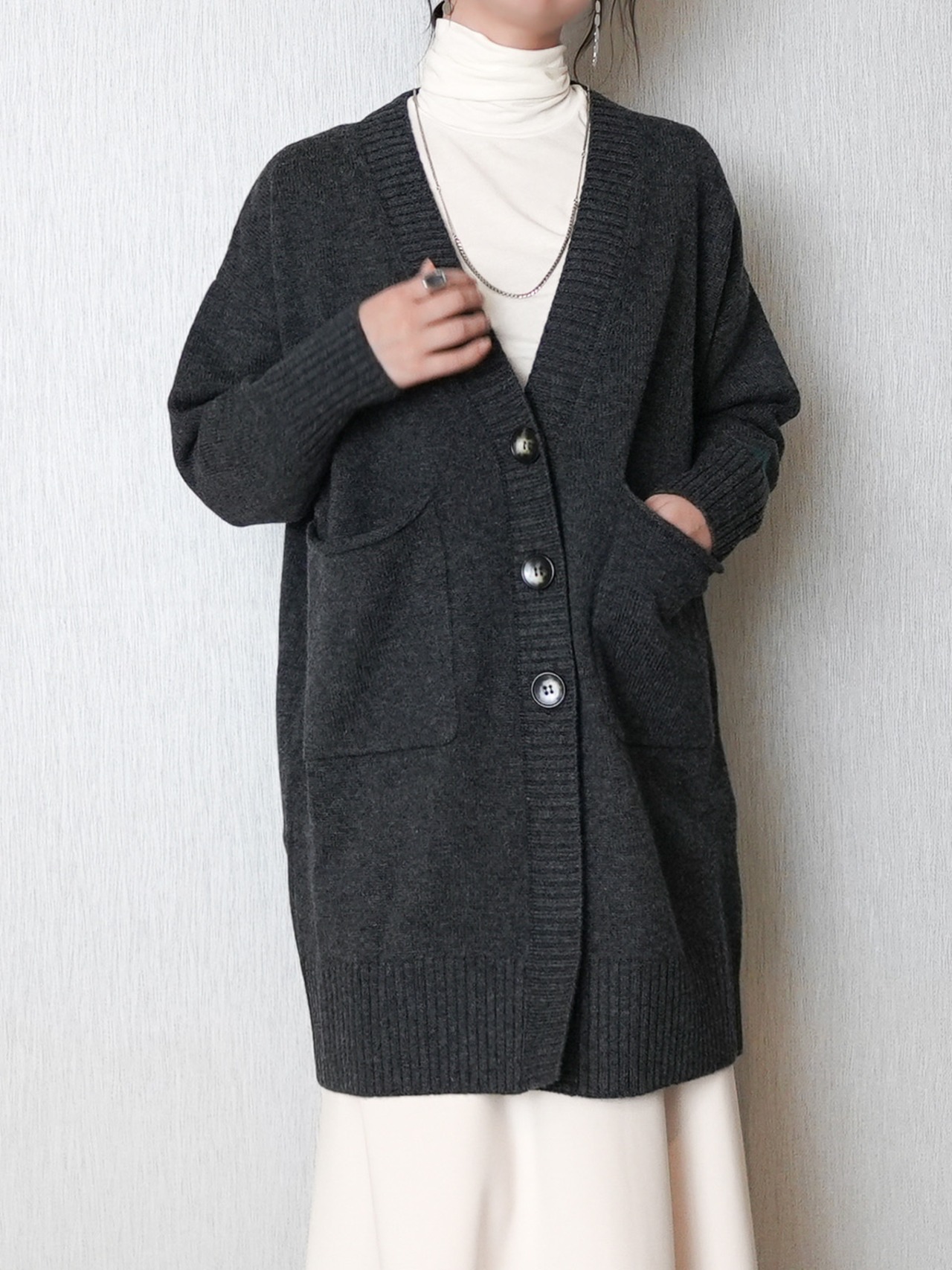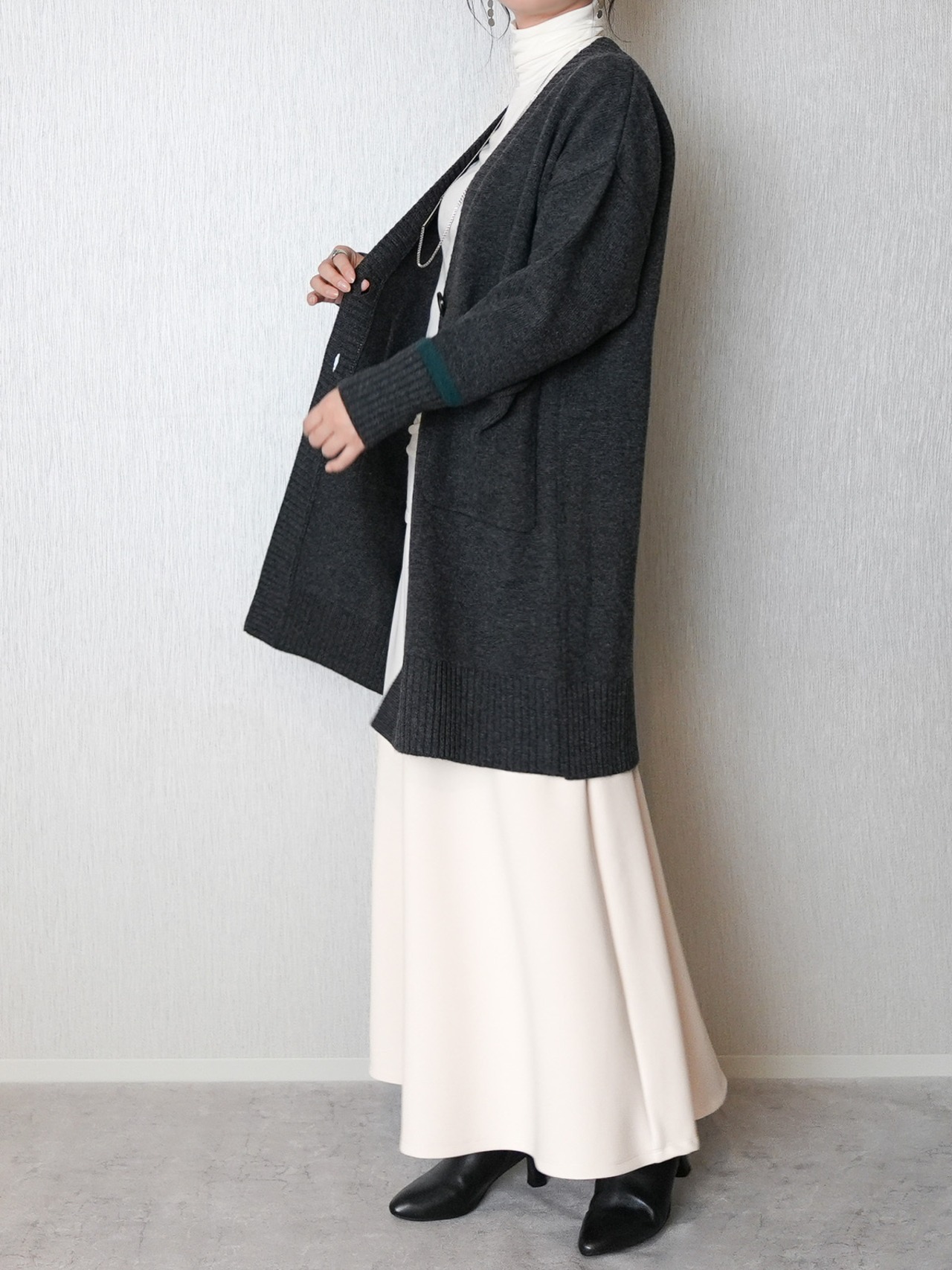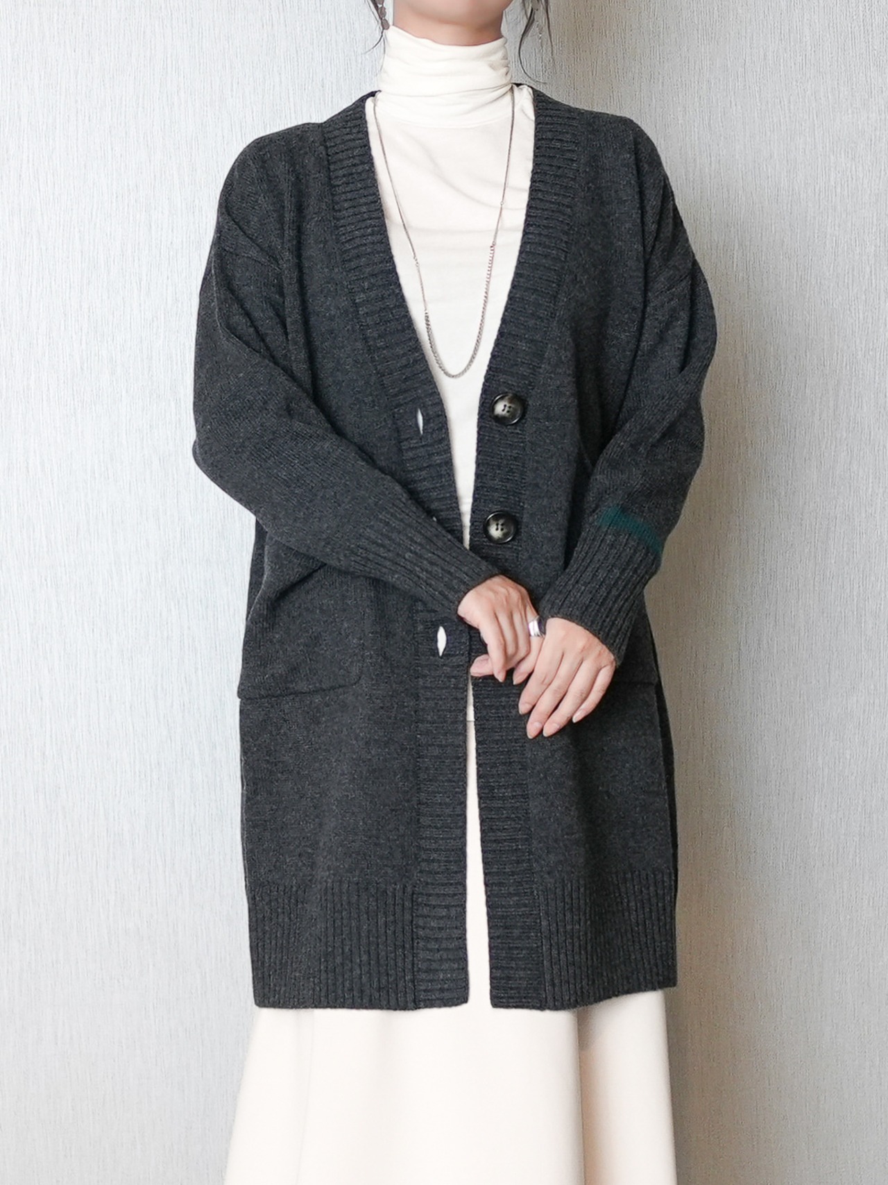 ゆったりした張りのあるシルエットが特徴のロングカーディガン。