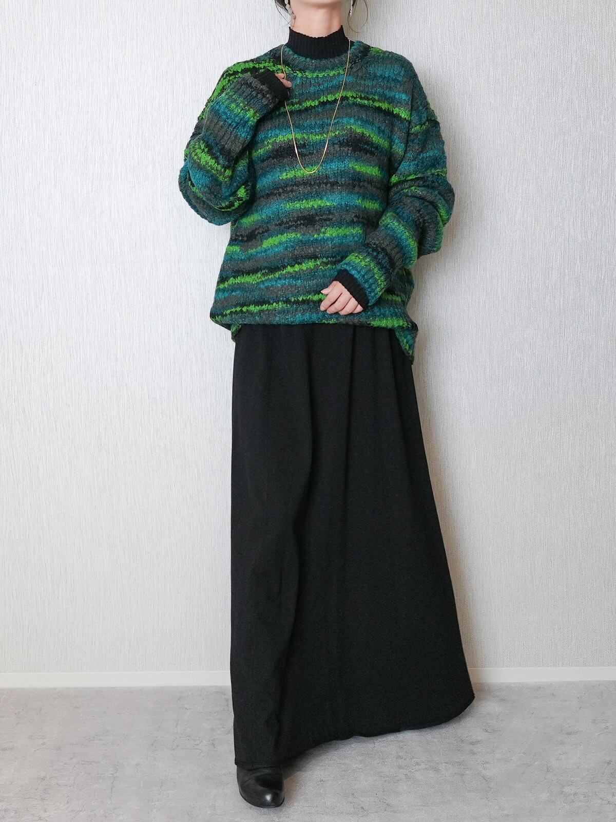 イタリアMIXヤーンニットプルオーバー / グリーンMIX