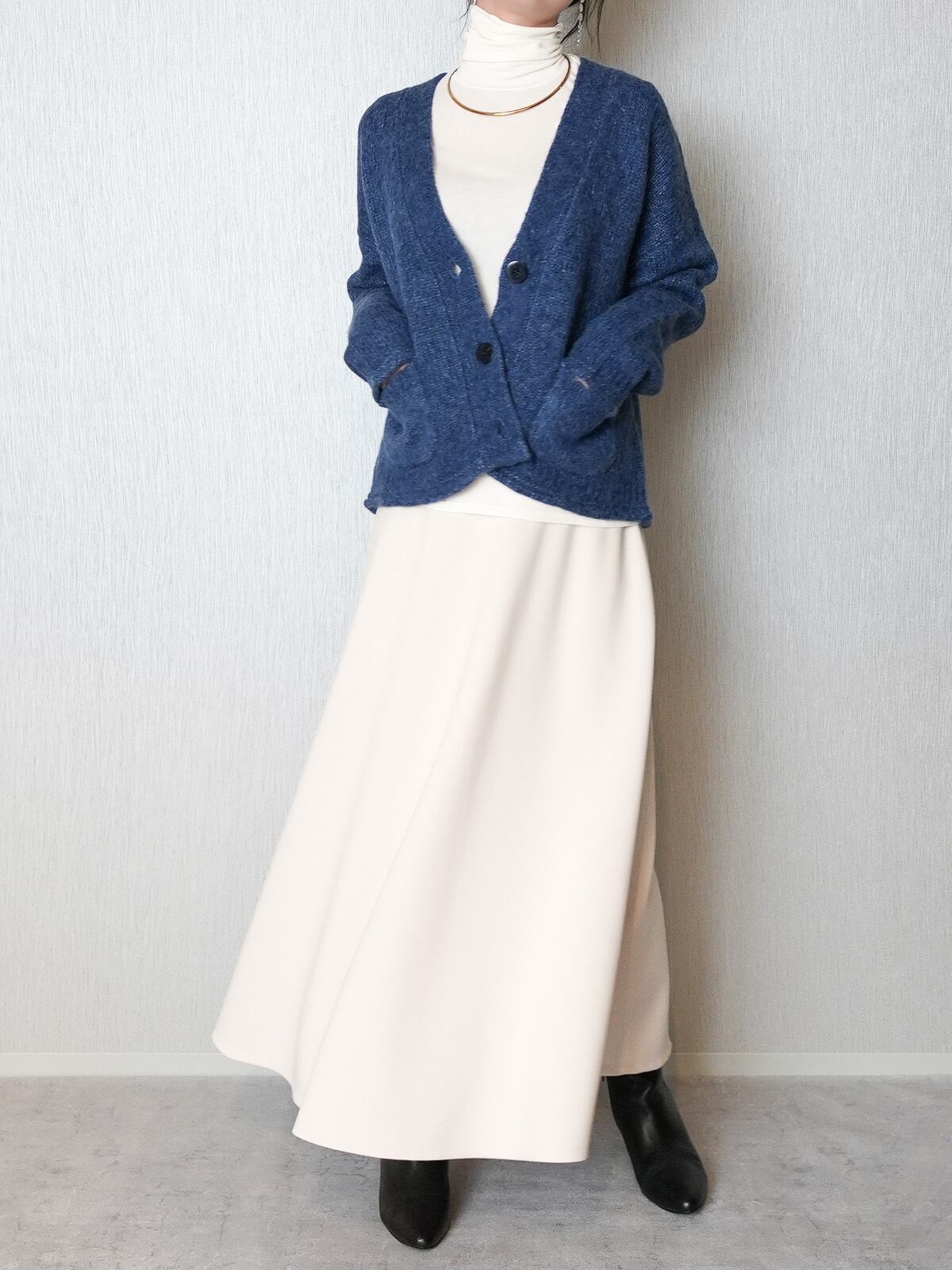 アルパカ混のふわふわローゲージカーディガンです。