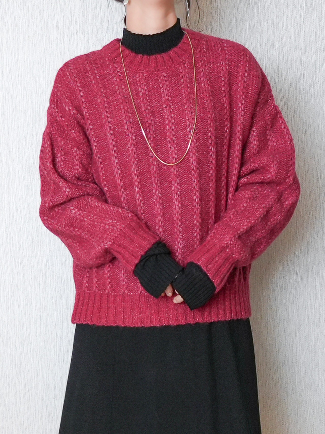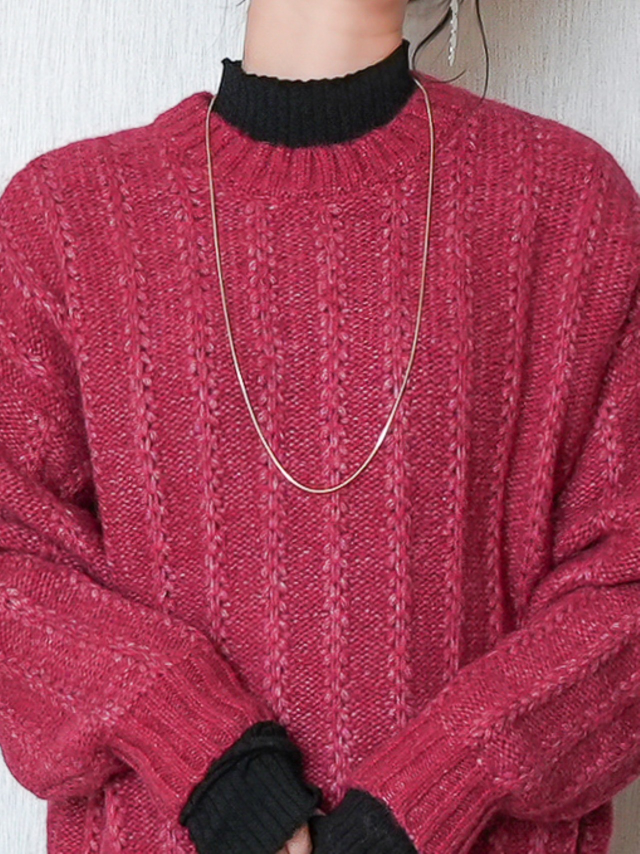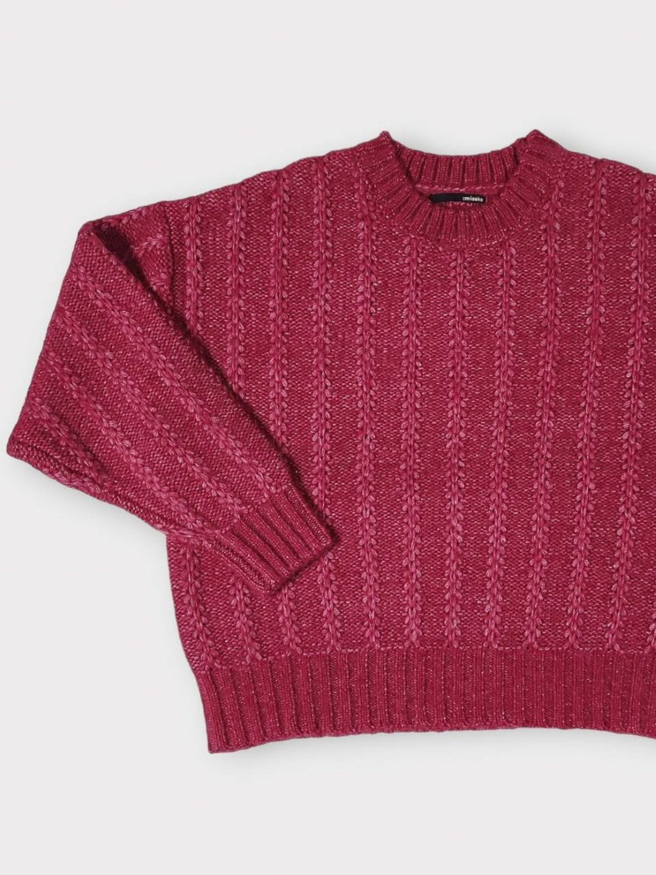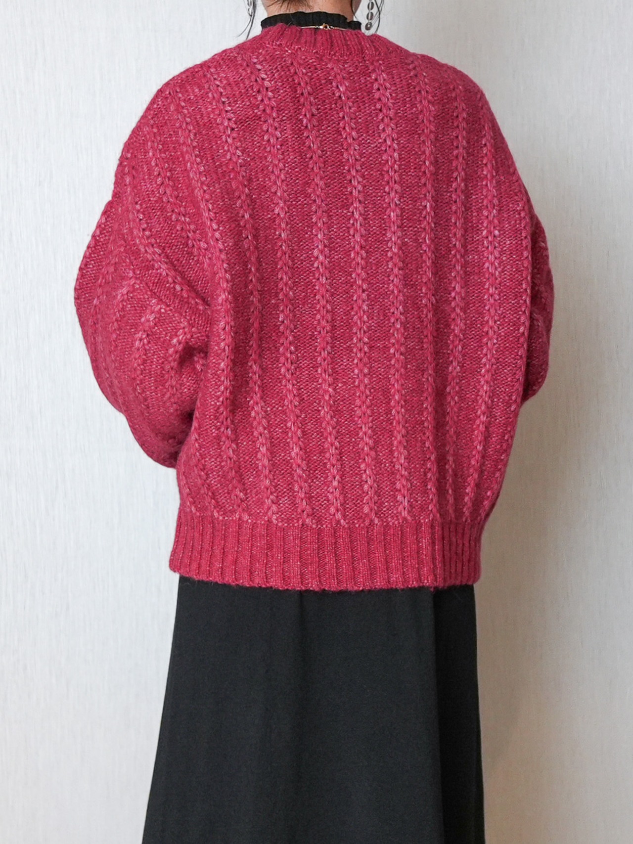 アルパカ混タック柄ニットプルオーバー / ピンク
