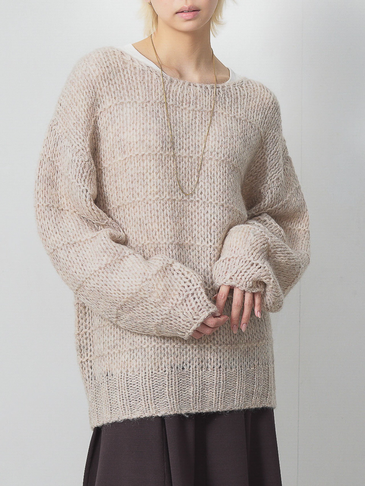 ローゲージスケスケニットプルオーバー / ベージュ