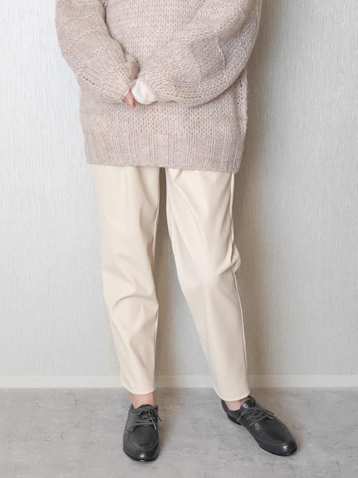 異素材感を感じる素材、例えば毛足のあるような素材やローゲージニットとの