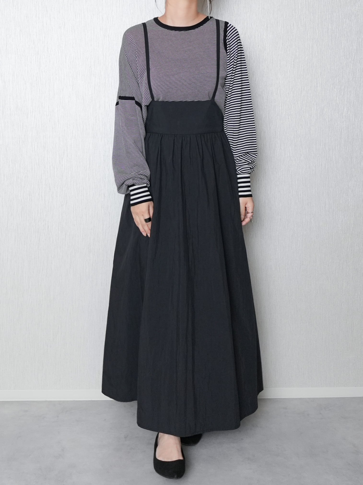 肩紐の調節を長めにとっているので、長くしてロング丈のサロペットとして、
