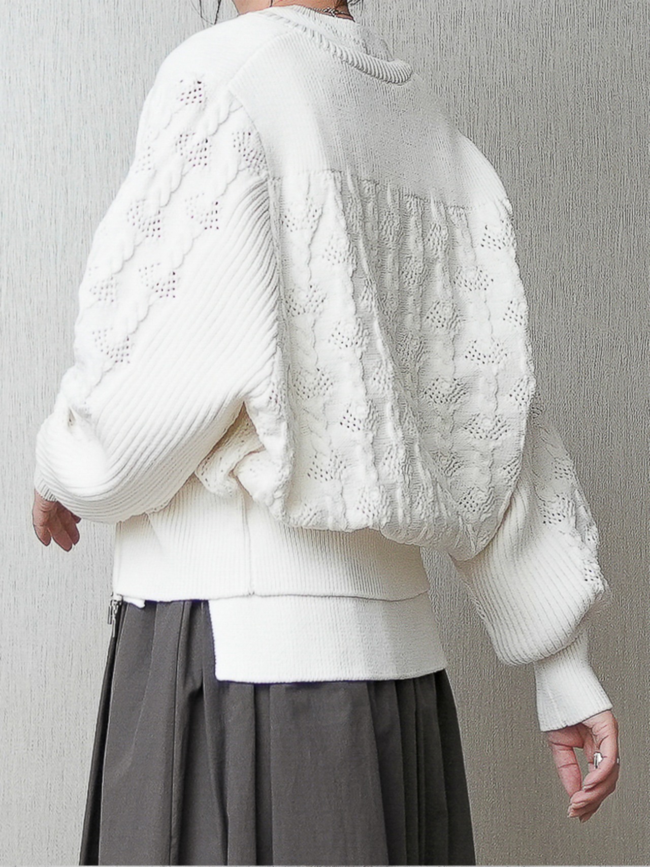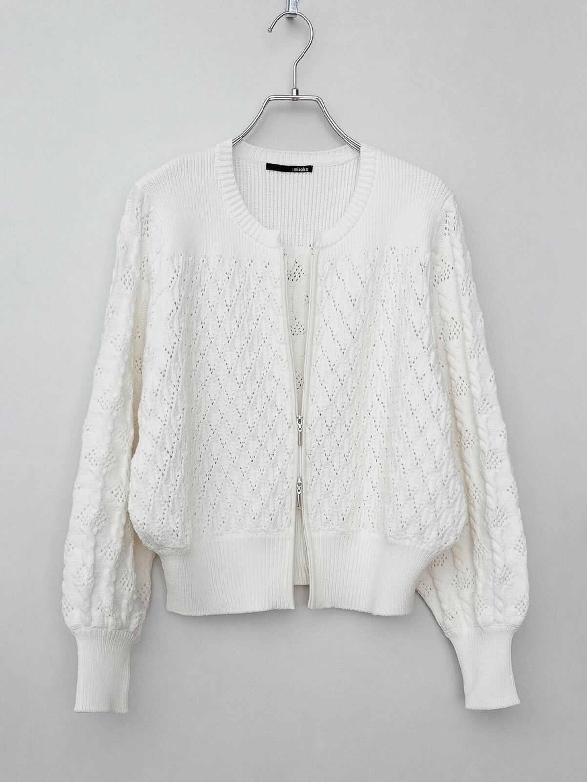 パターンニッティング ジップニットカーディガン / オフホワイト
