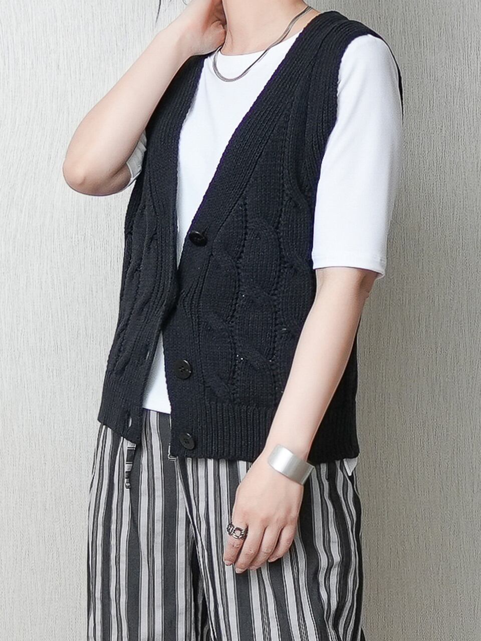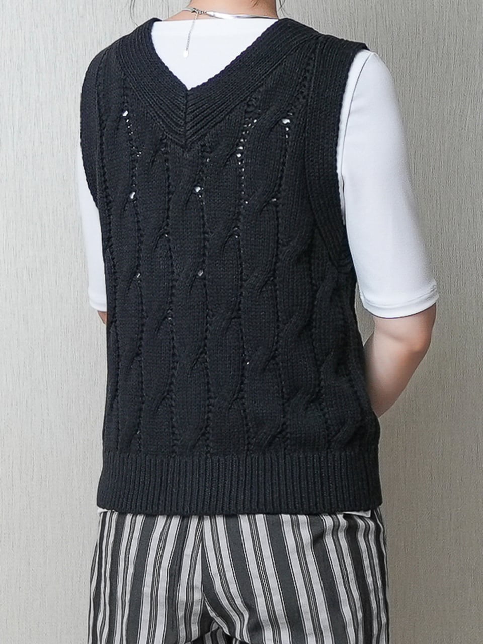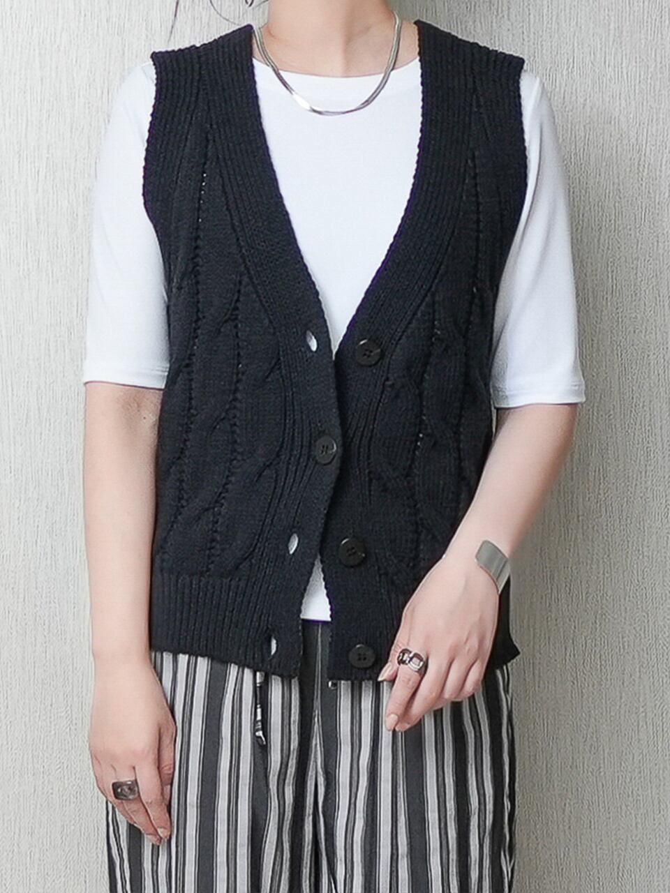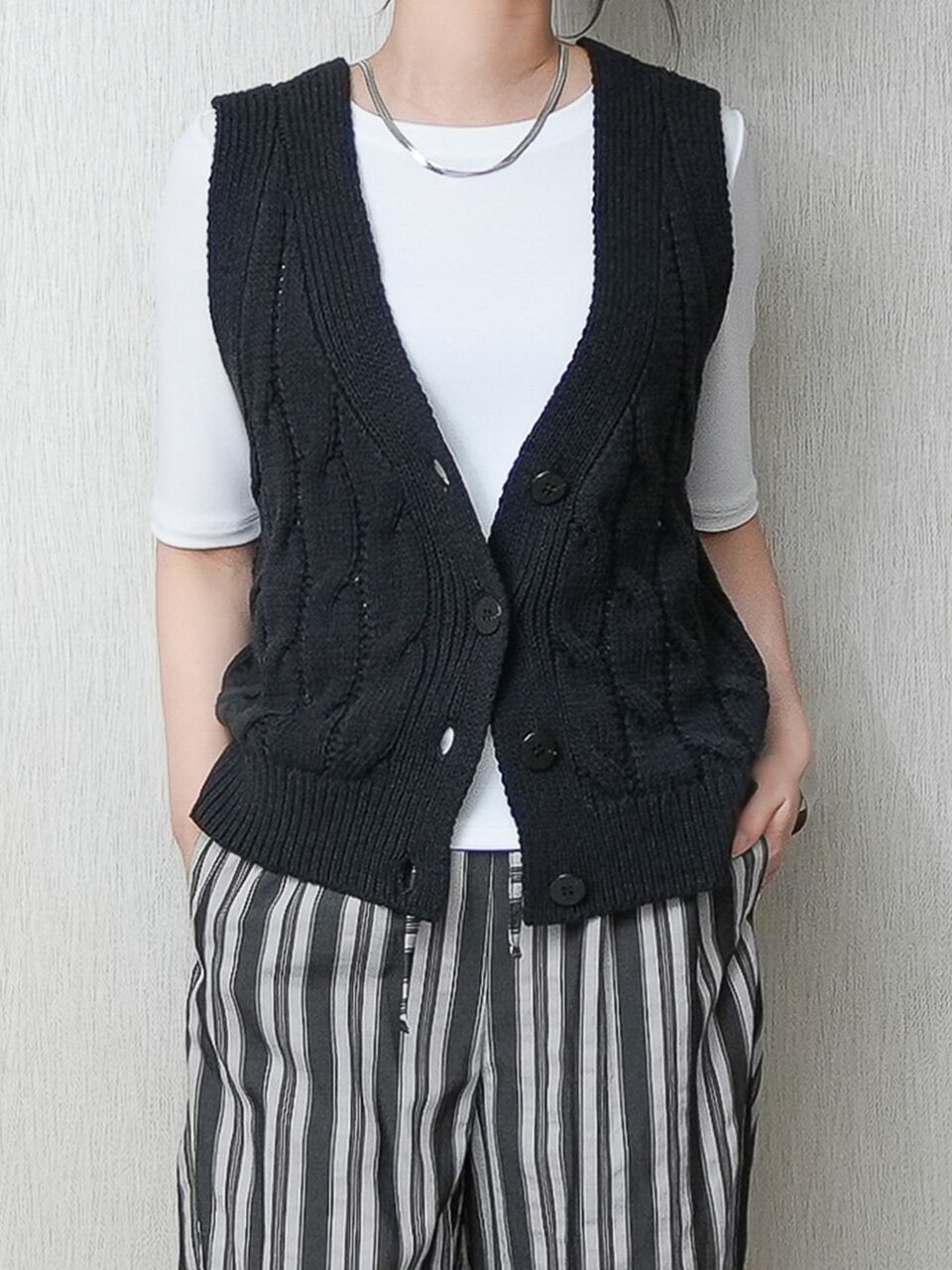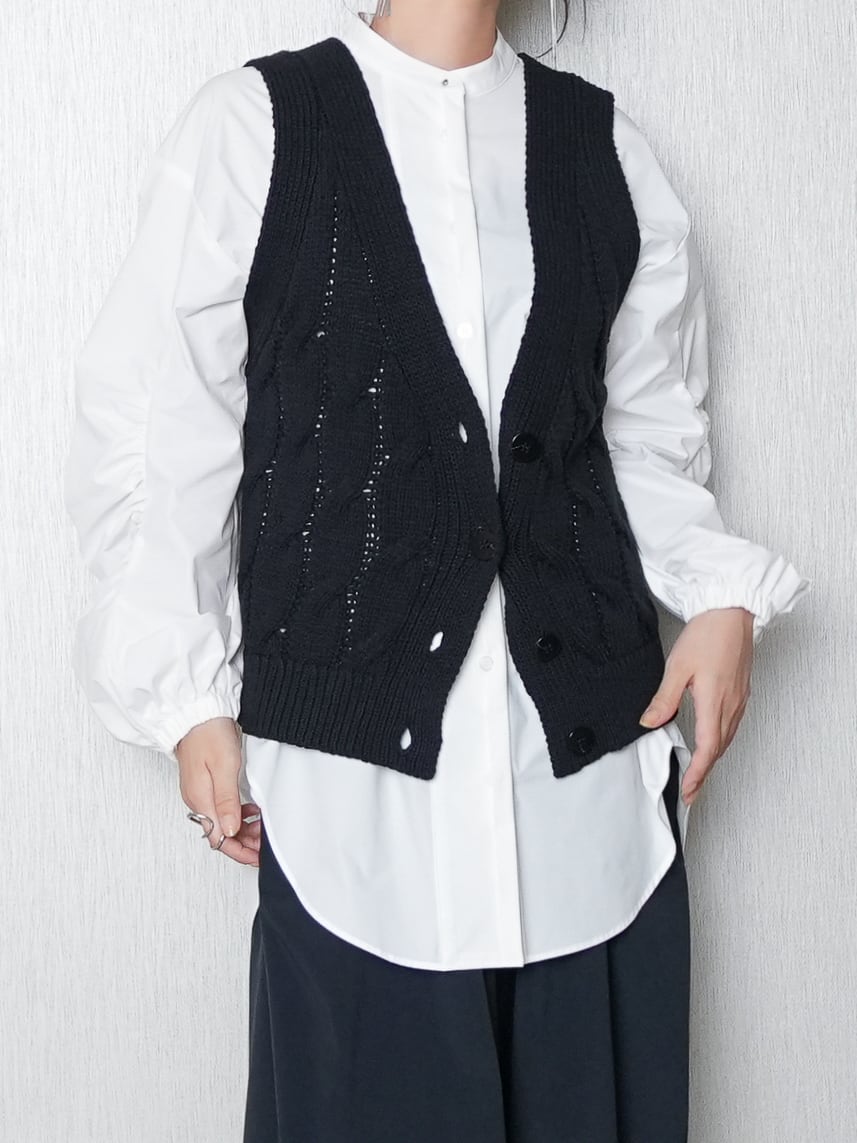 ざっくりケーブル柄のニットベストです。