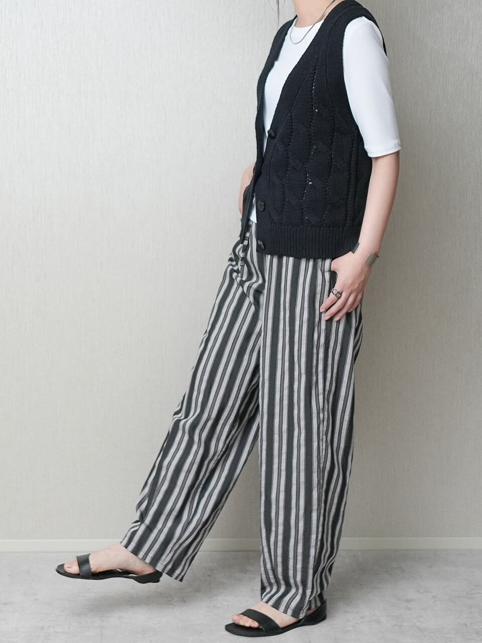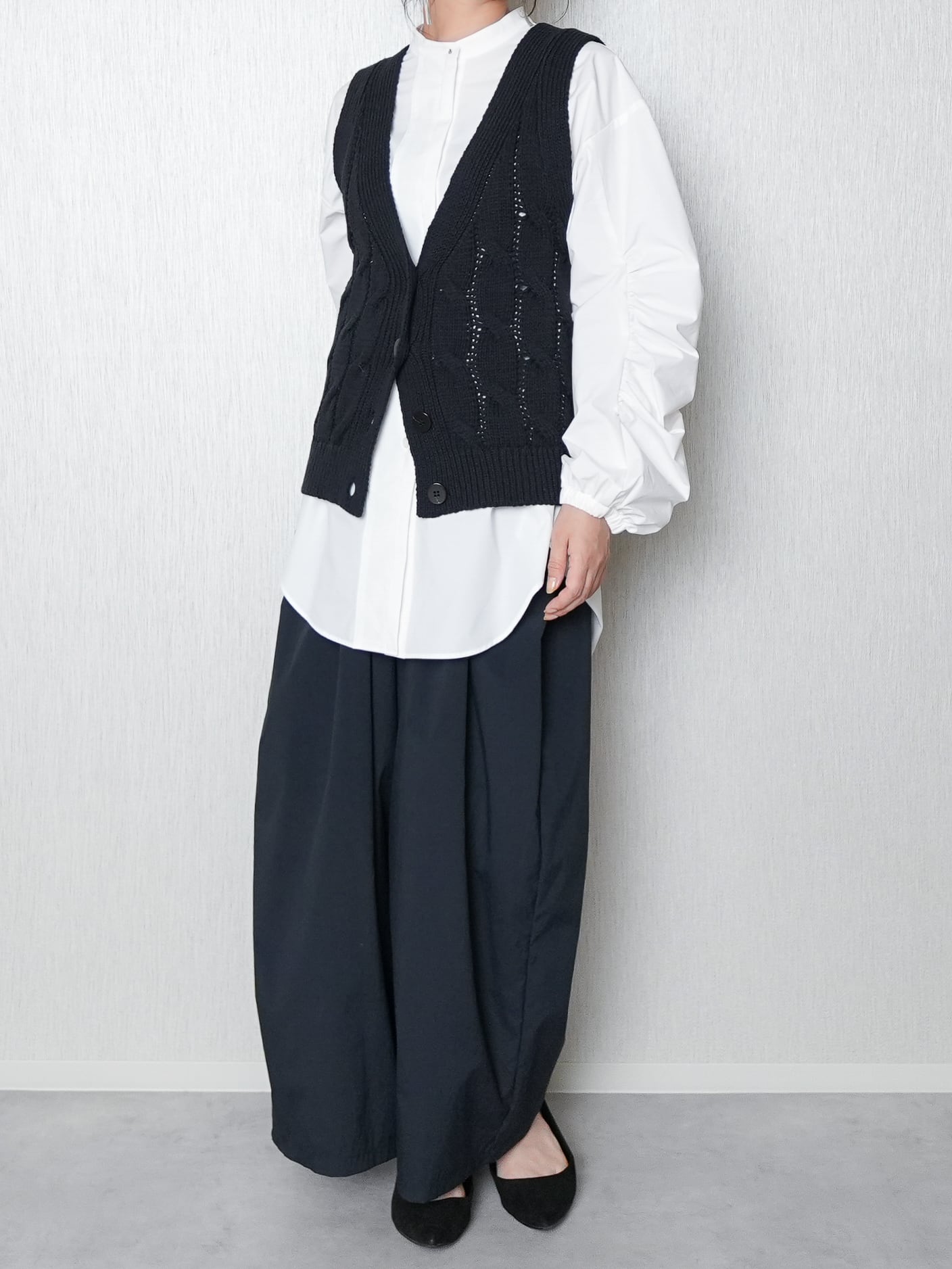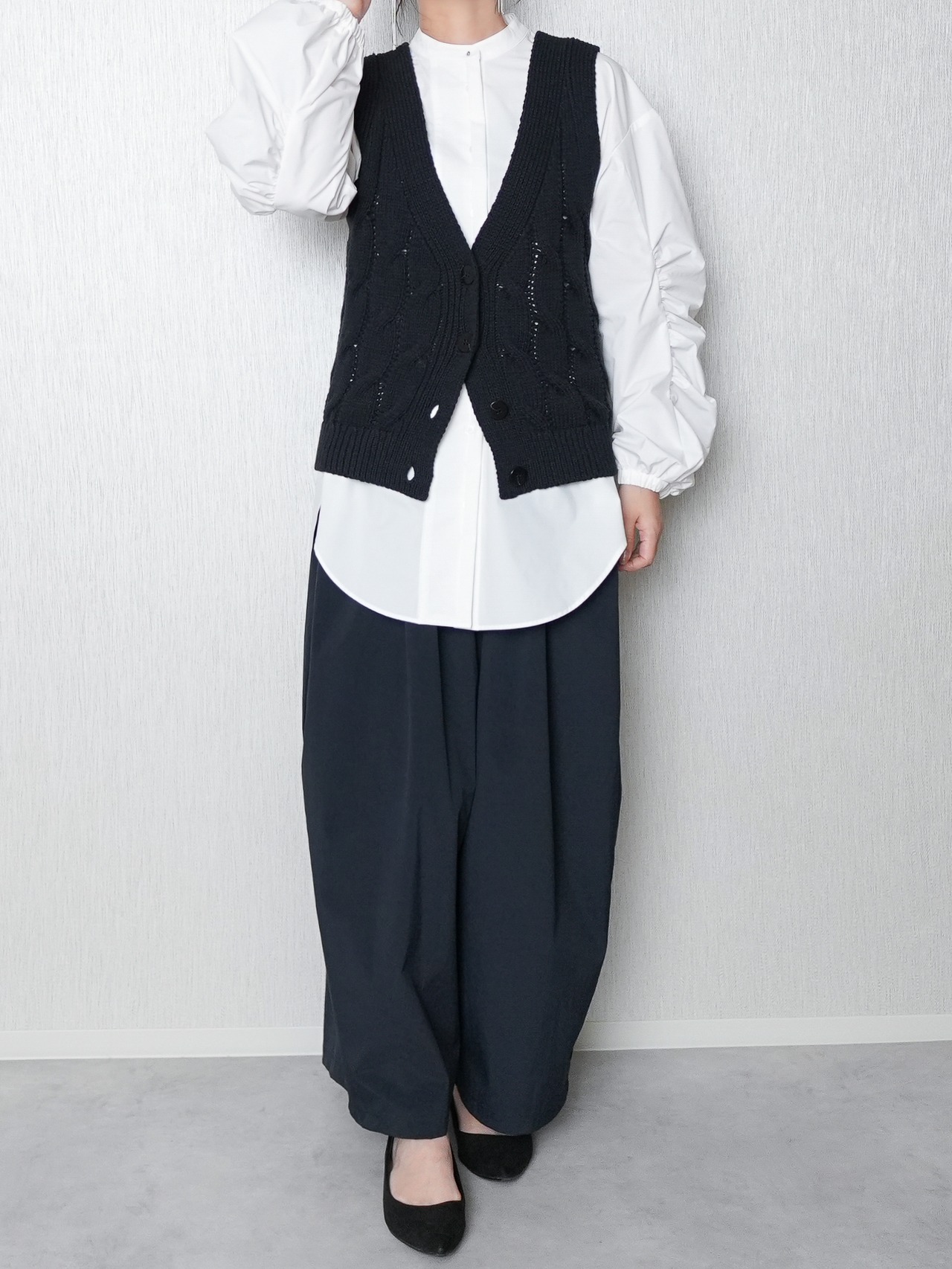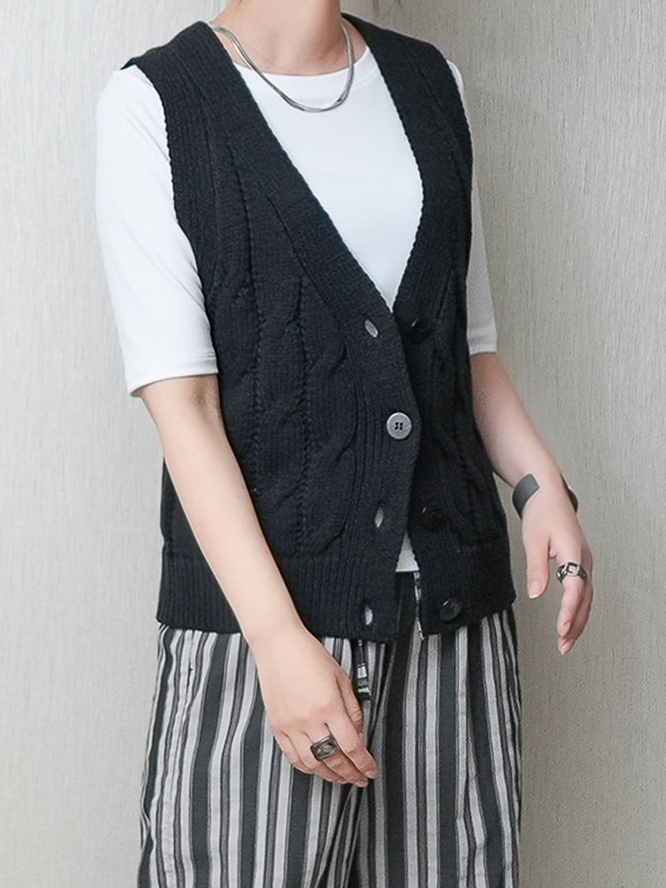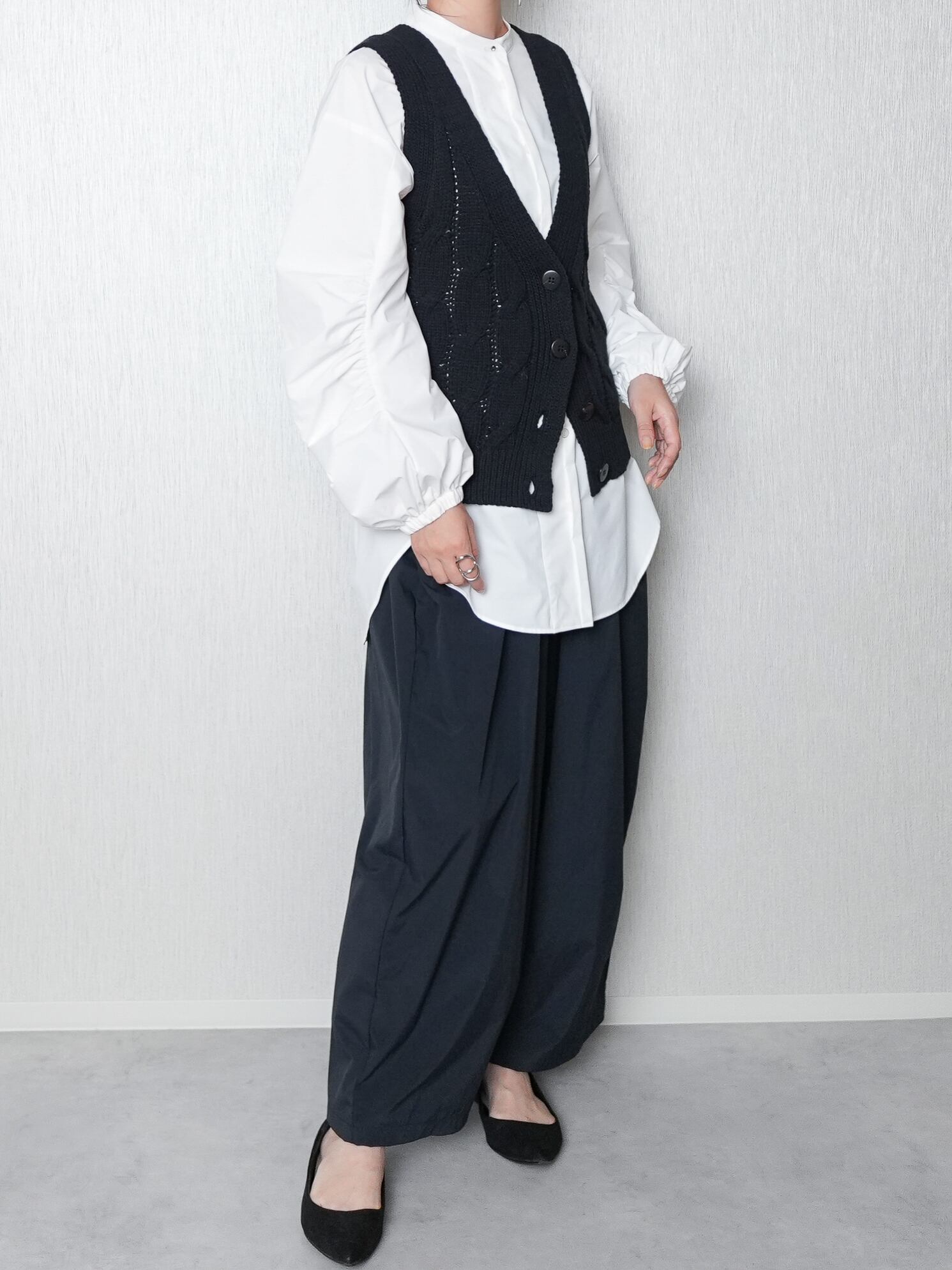 ざっくりケーブル柄のニットベストです。