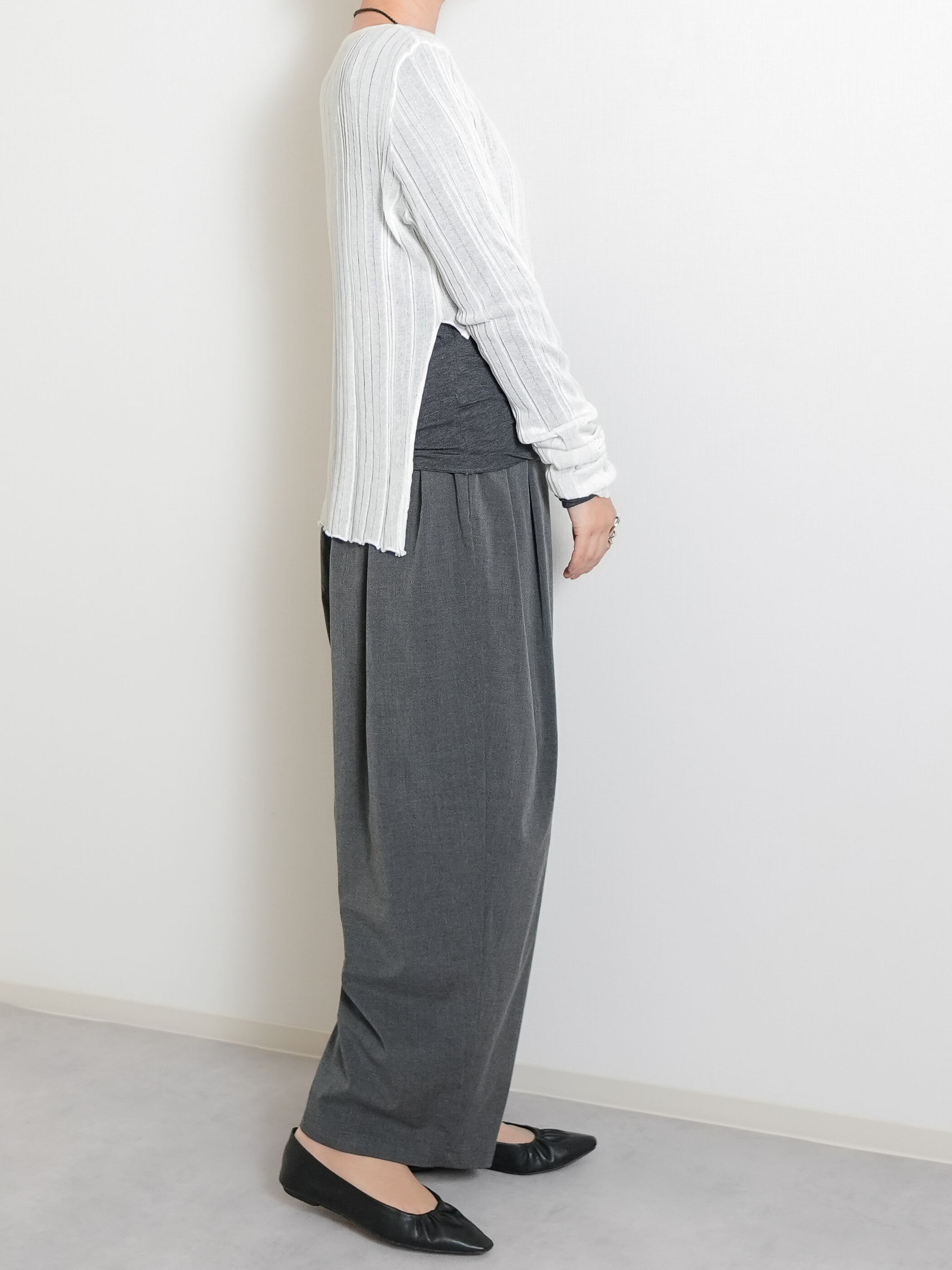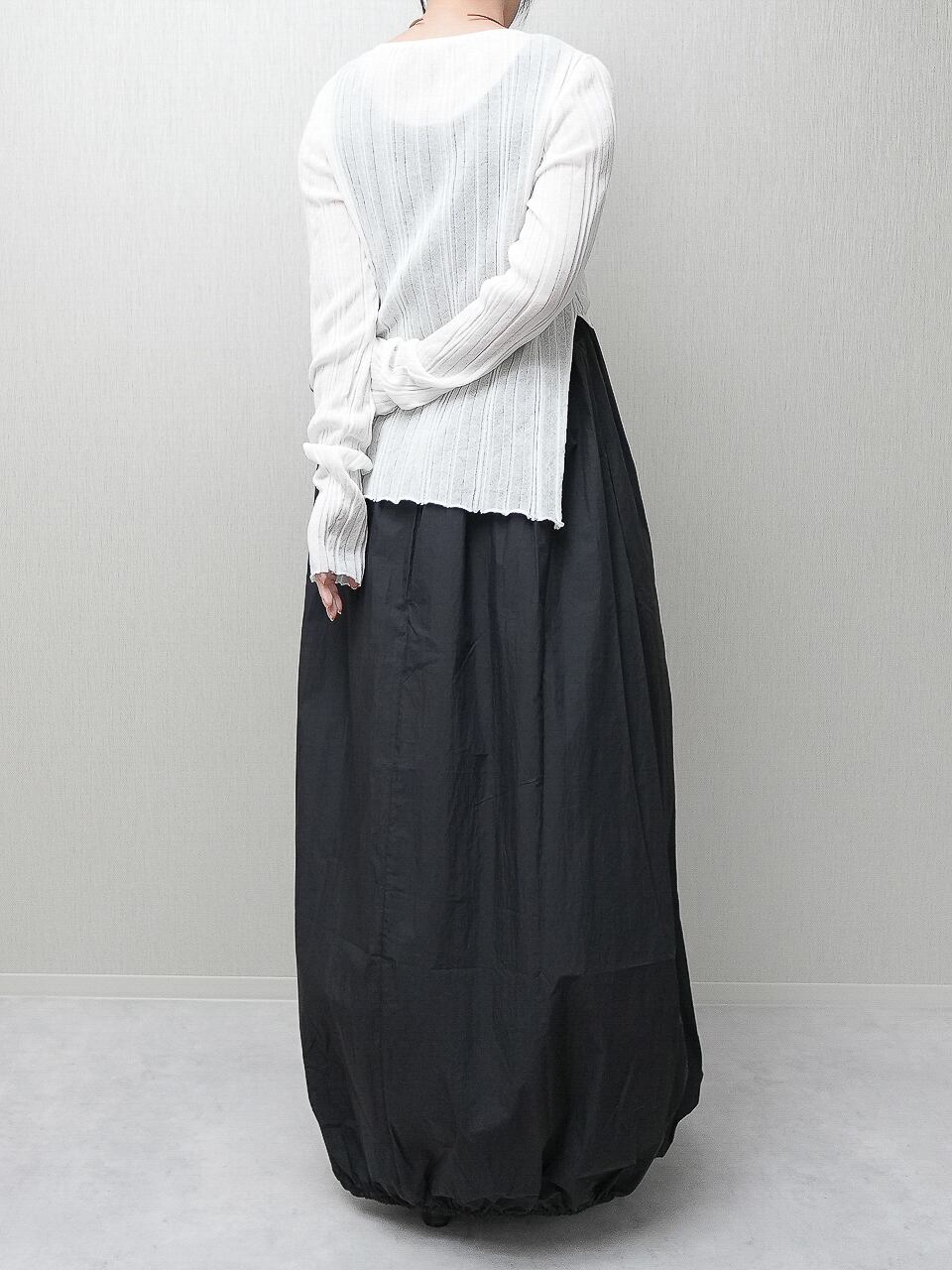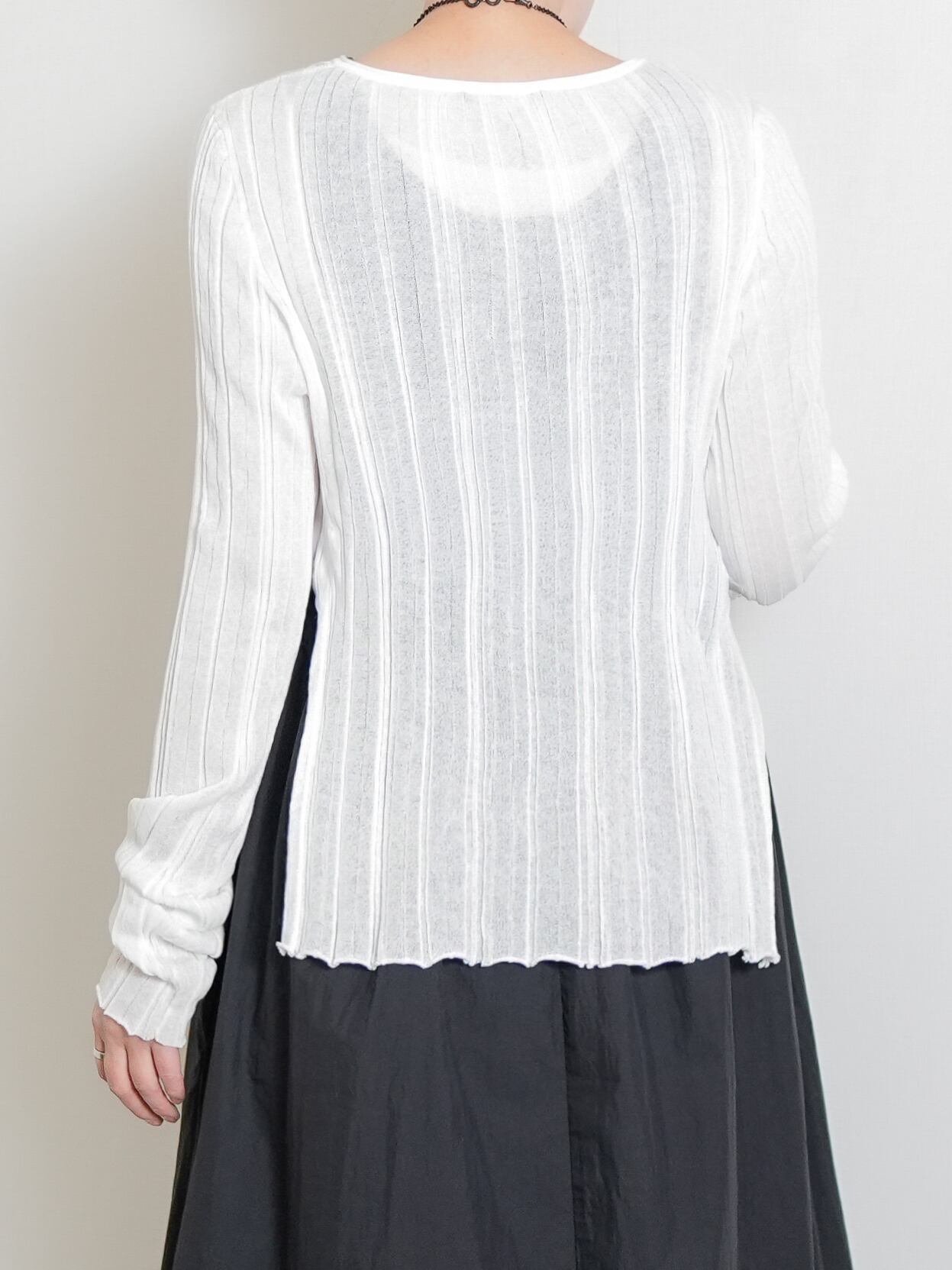 ランダムなリブ柄で、表情のある透け感を表現しています。