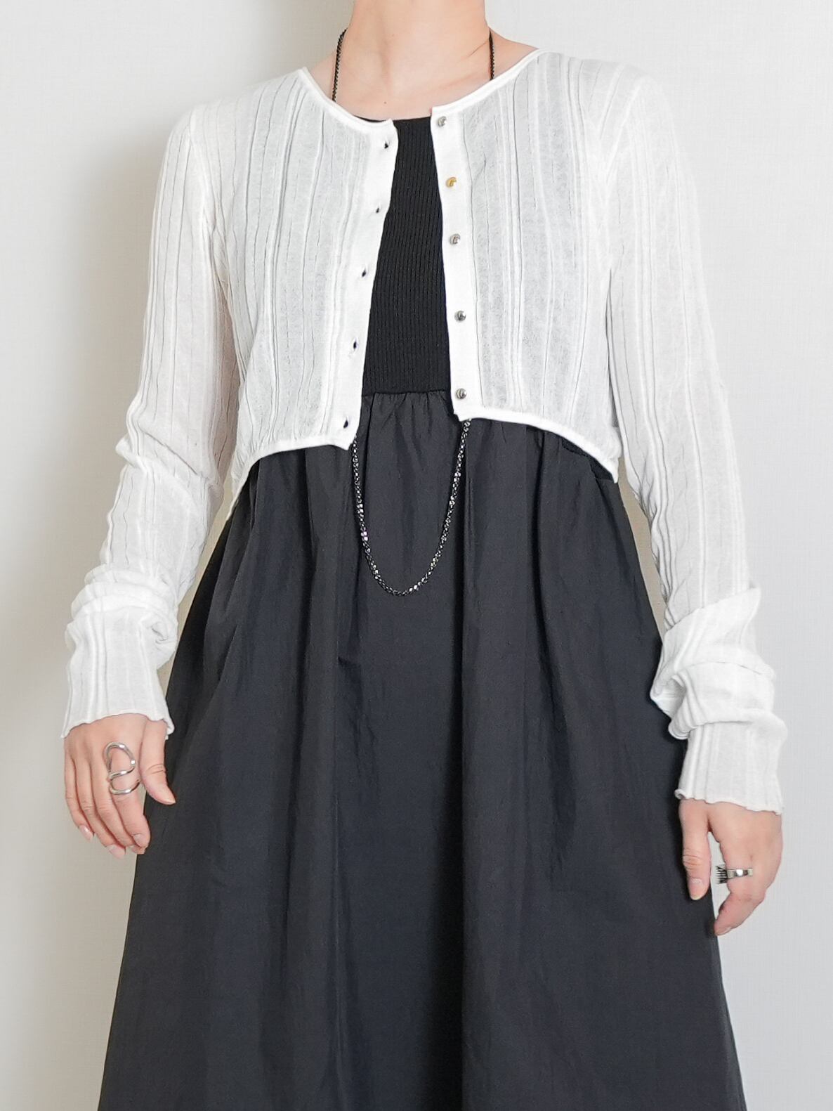 定番の人気素材、シアーコットンを使用したボレロ風カーディガン。