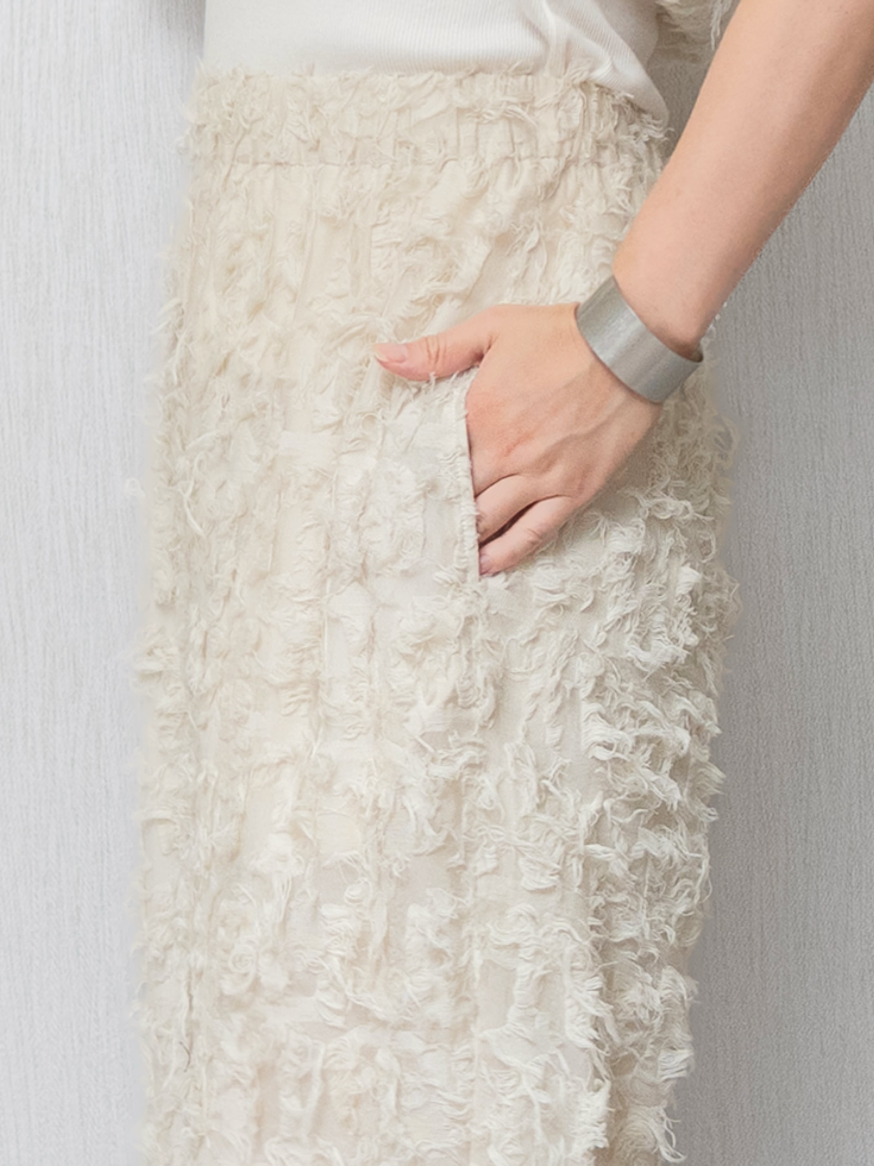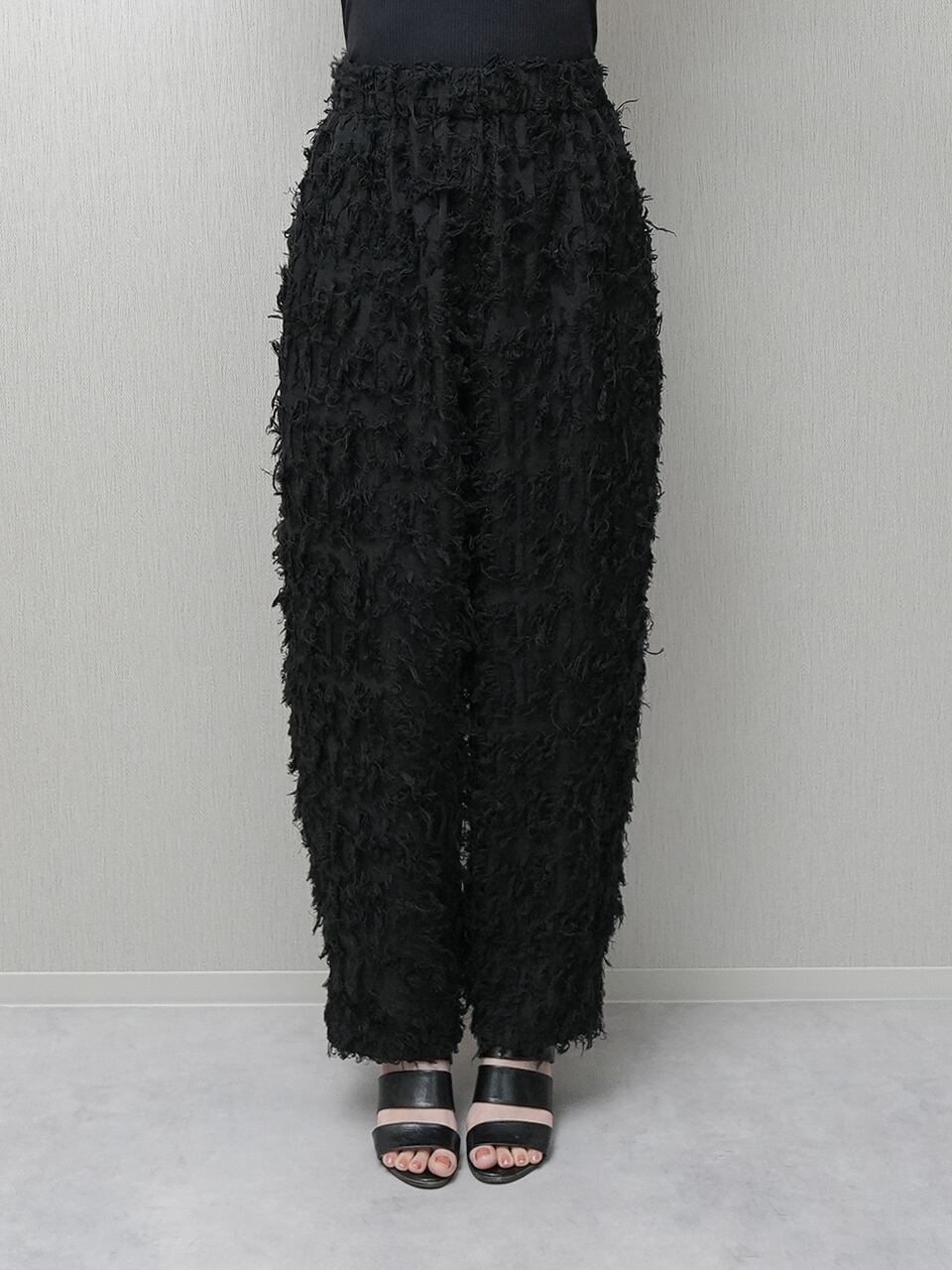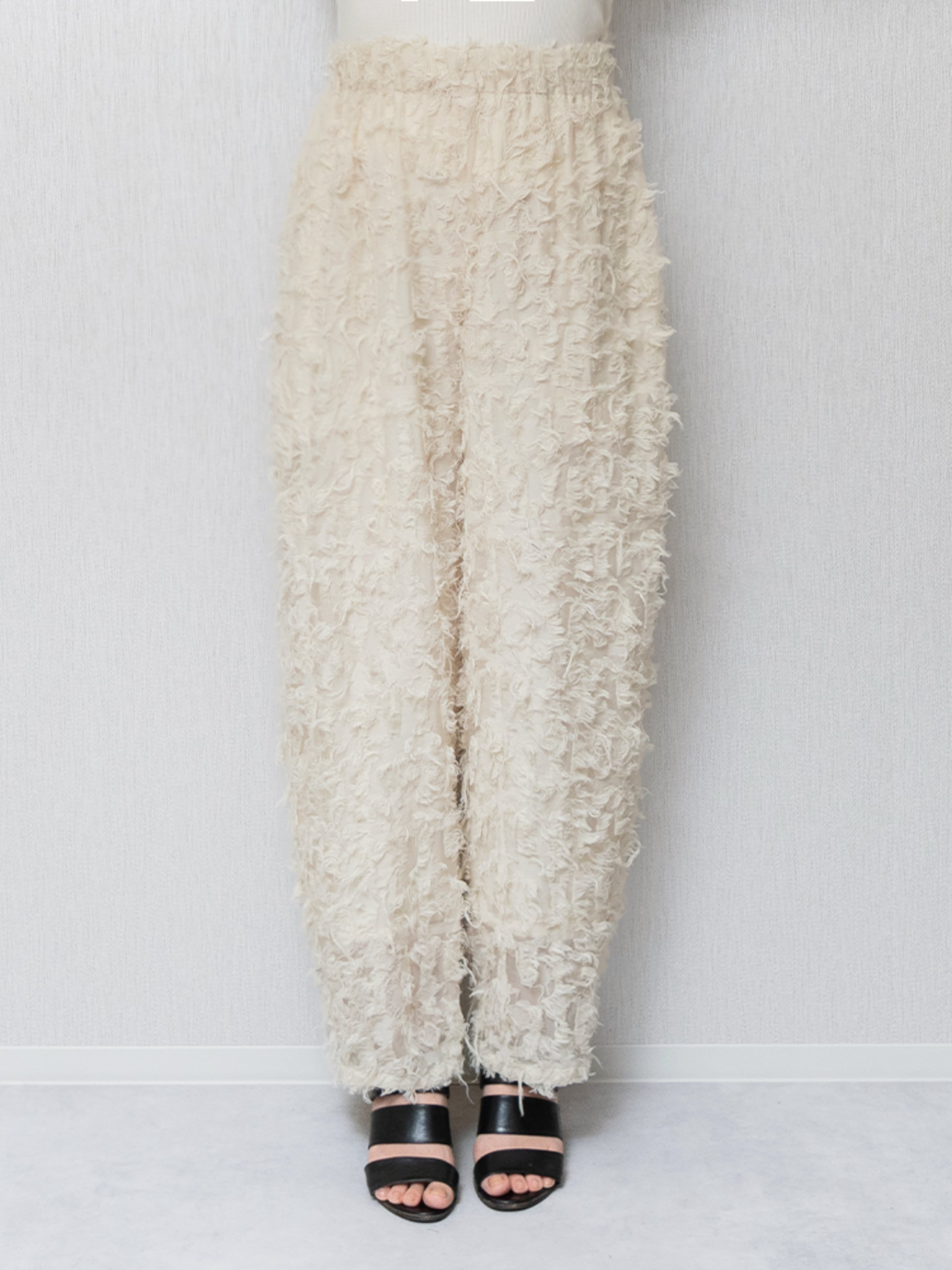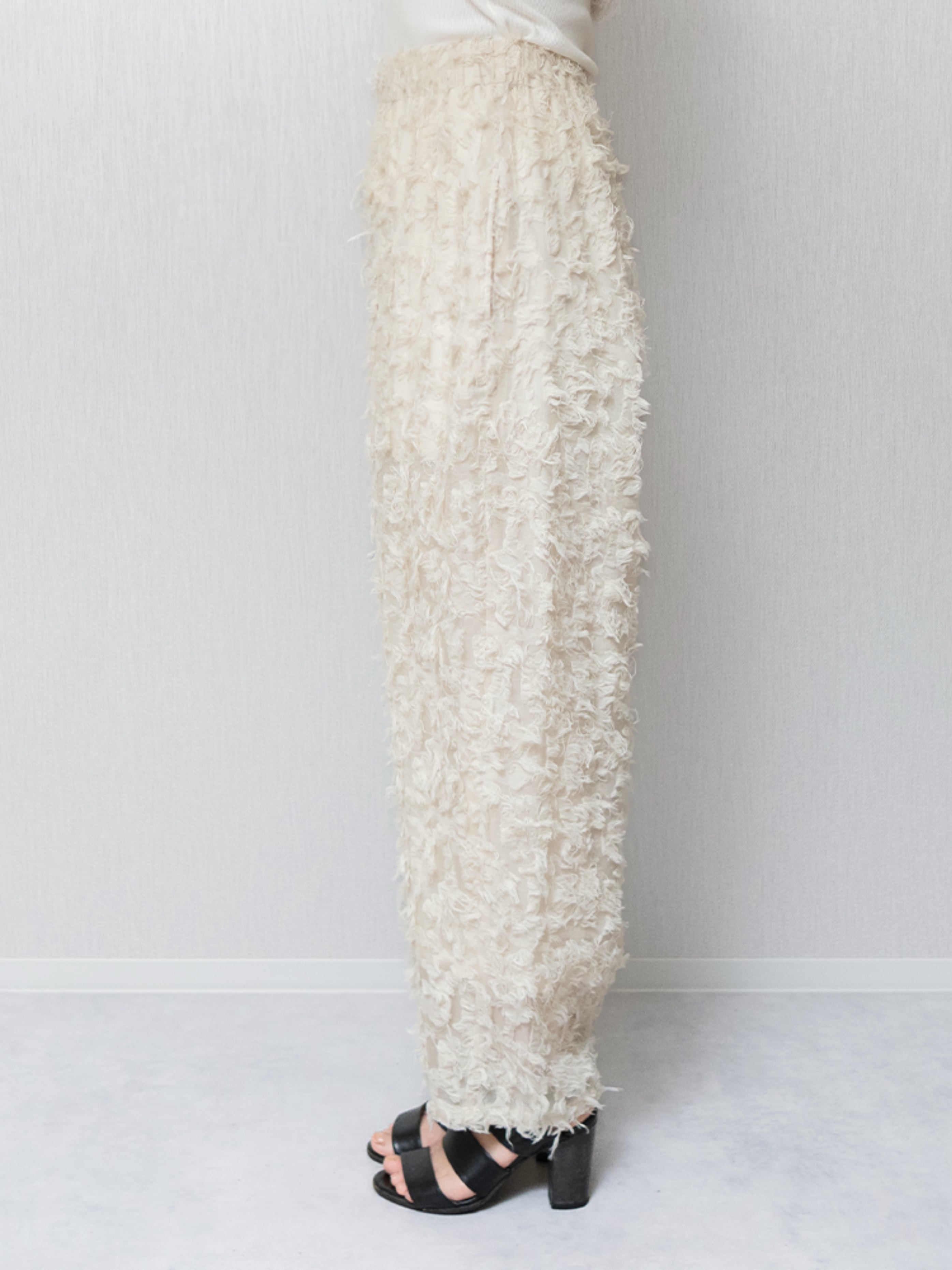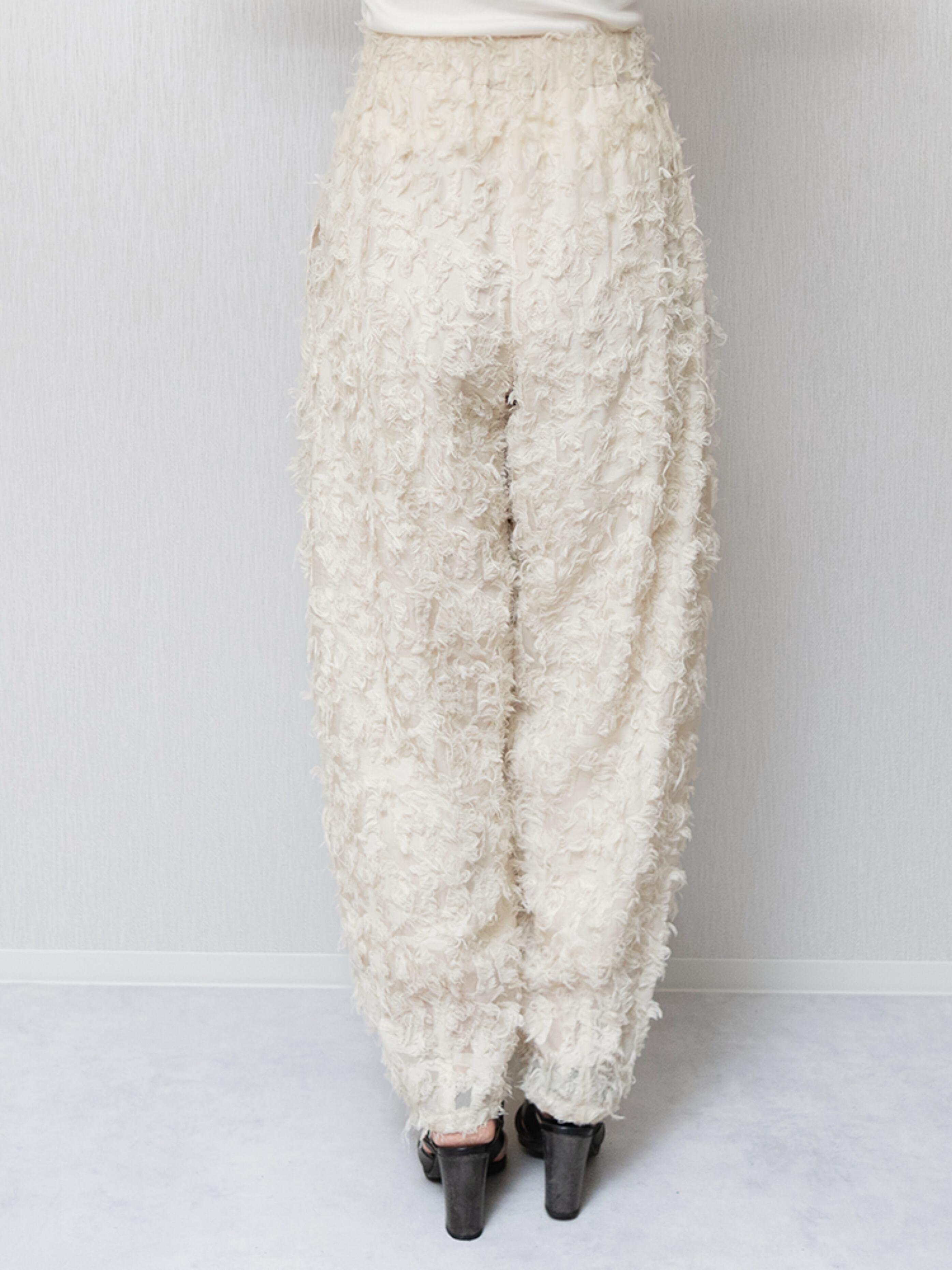 ナチュラルな素材感が特徴的なカットジャガードを使用したカーブパンツ。