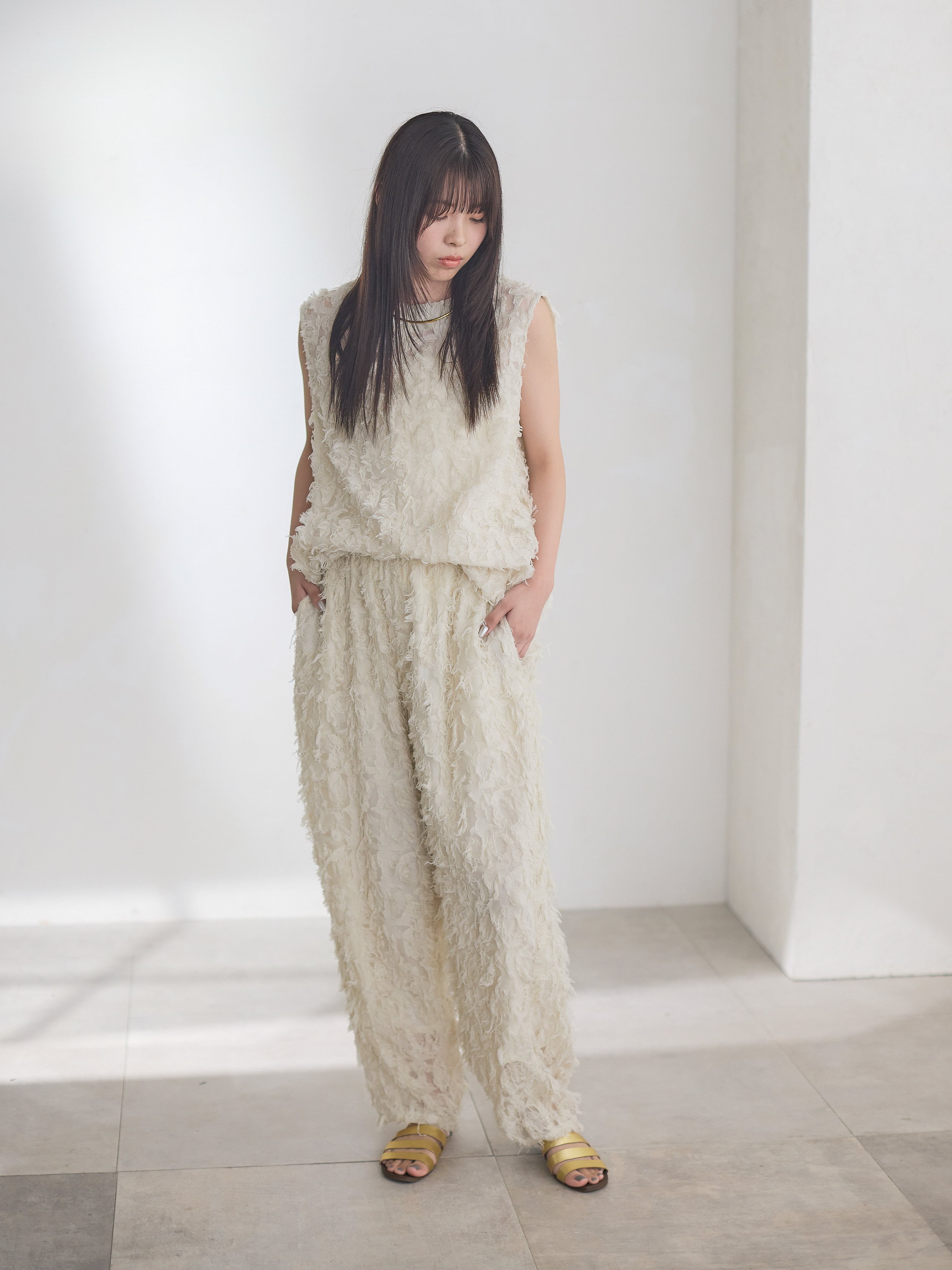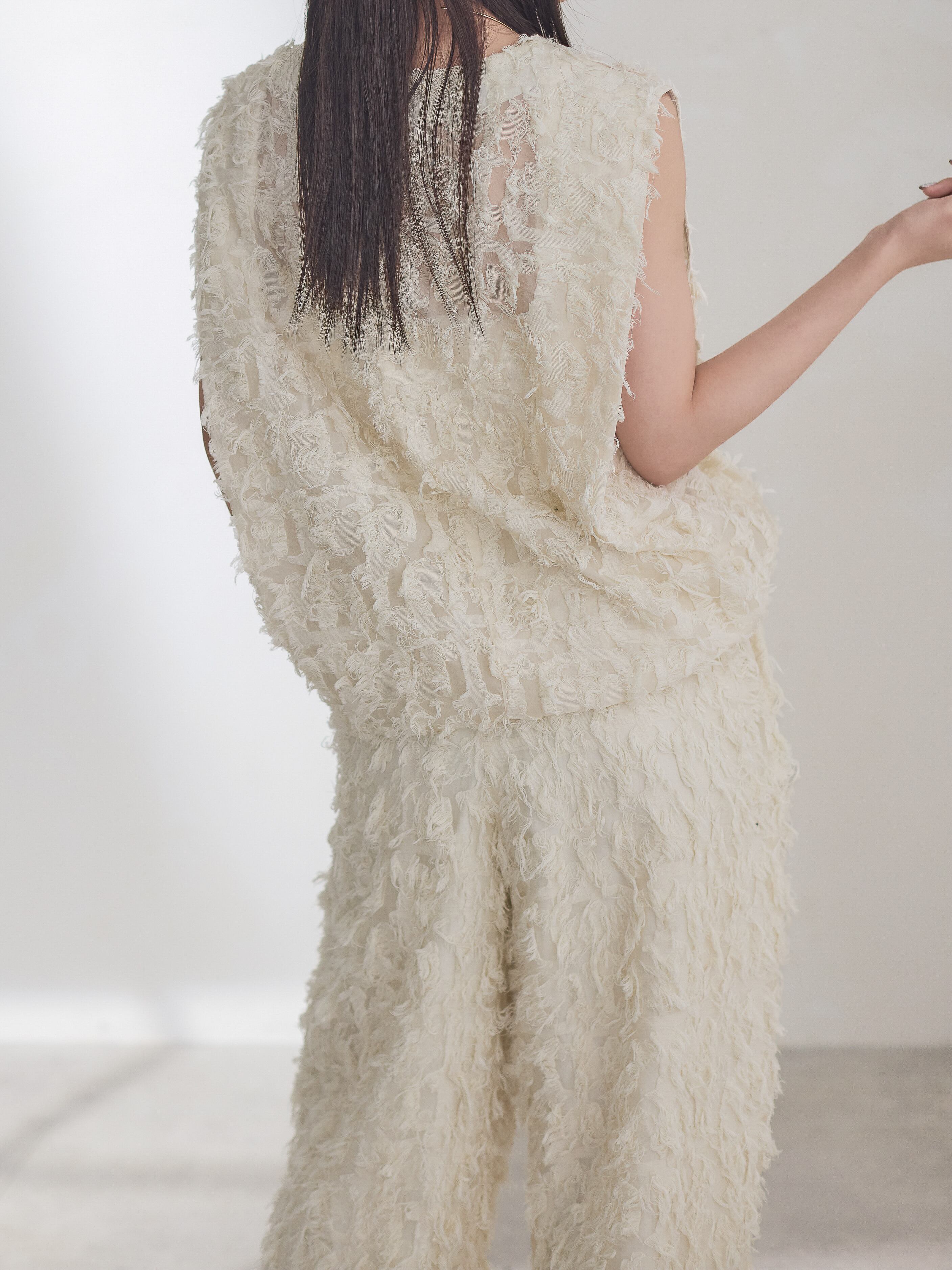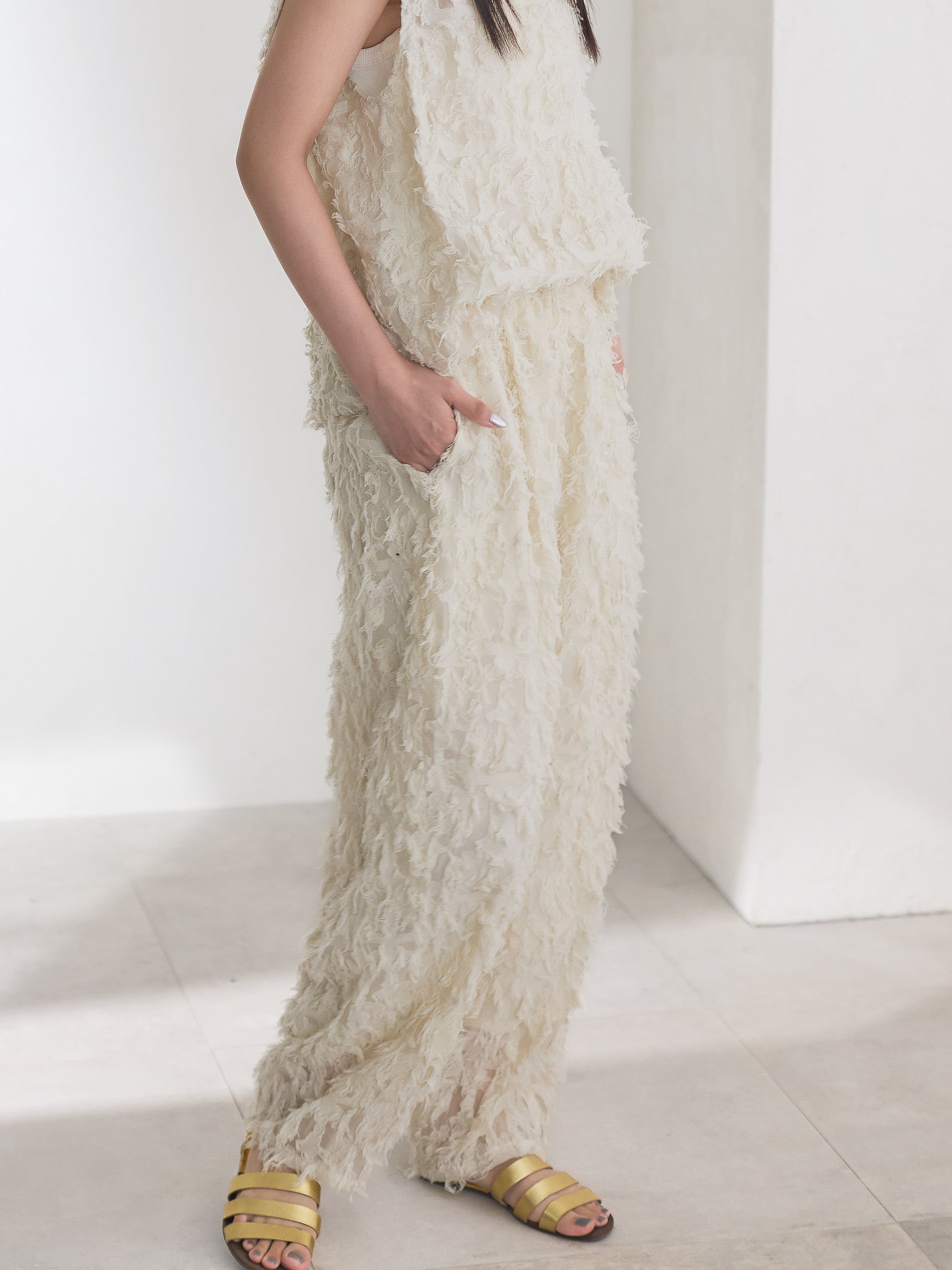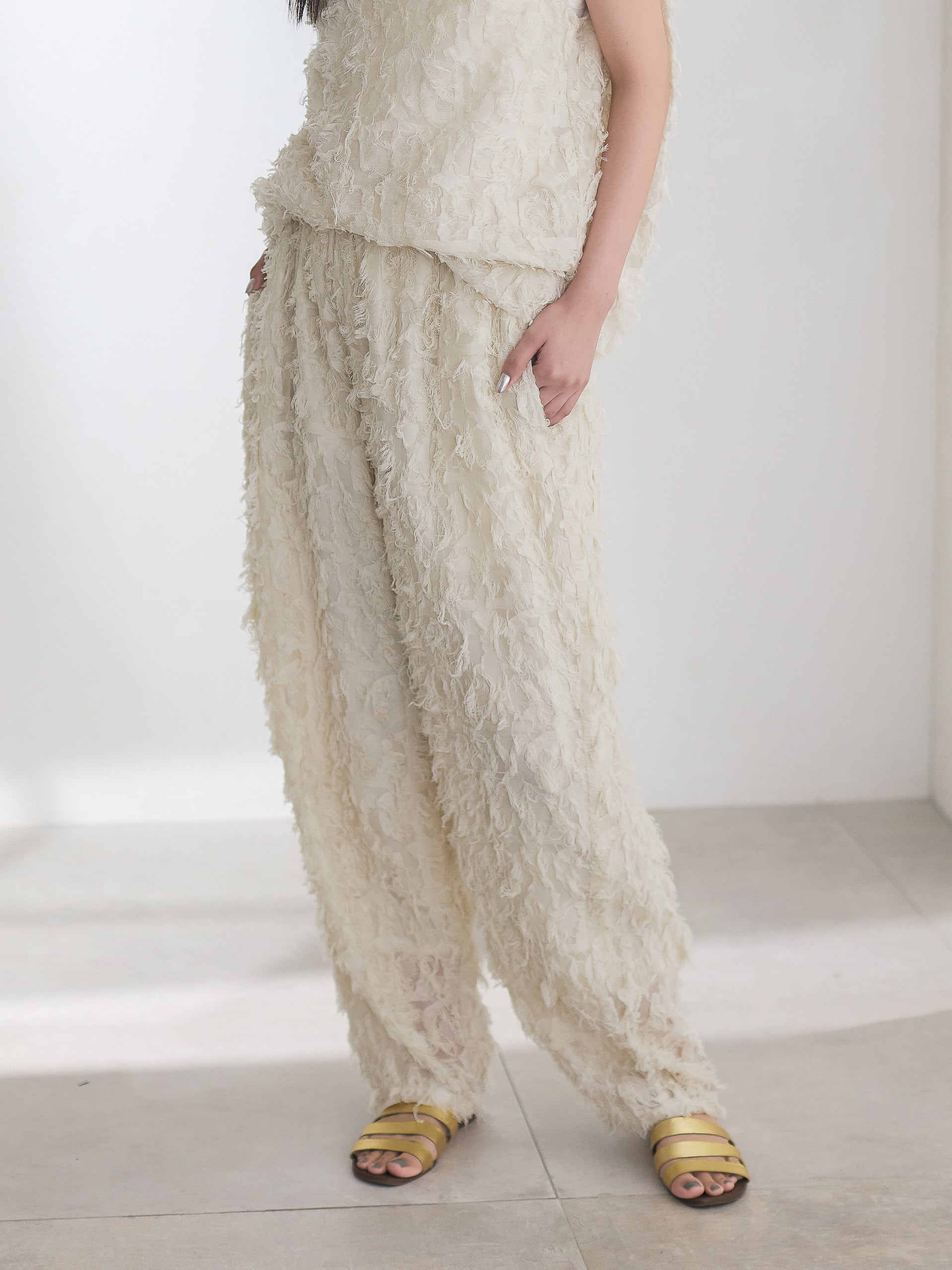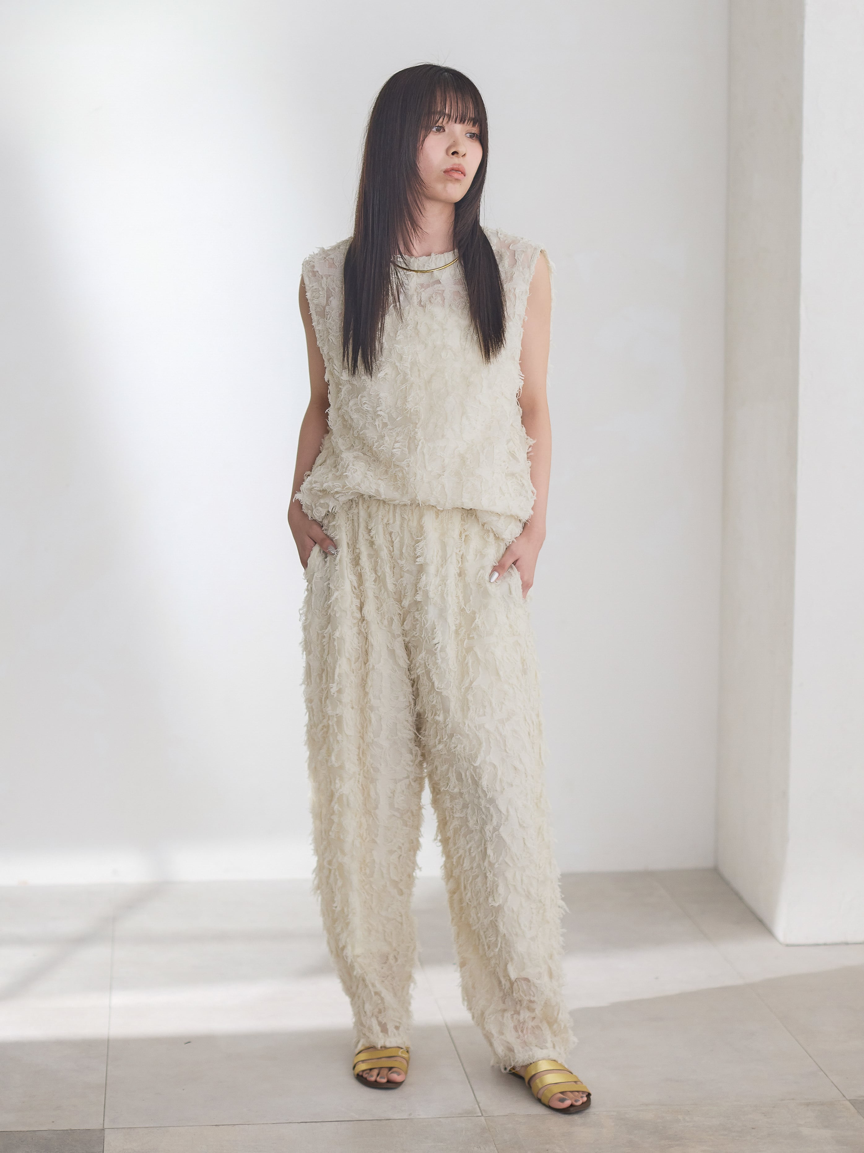 ナチュラルな素材感が特徴的なカットジャガードを使用したカーブパンツ。