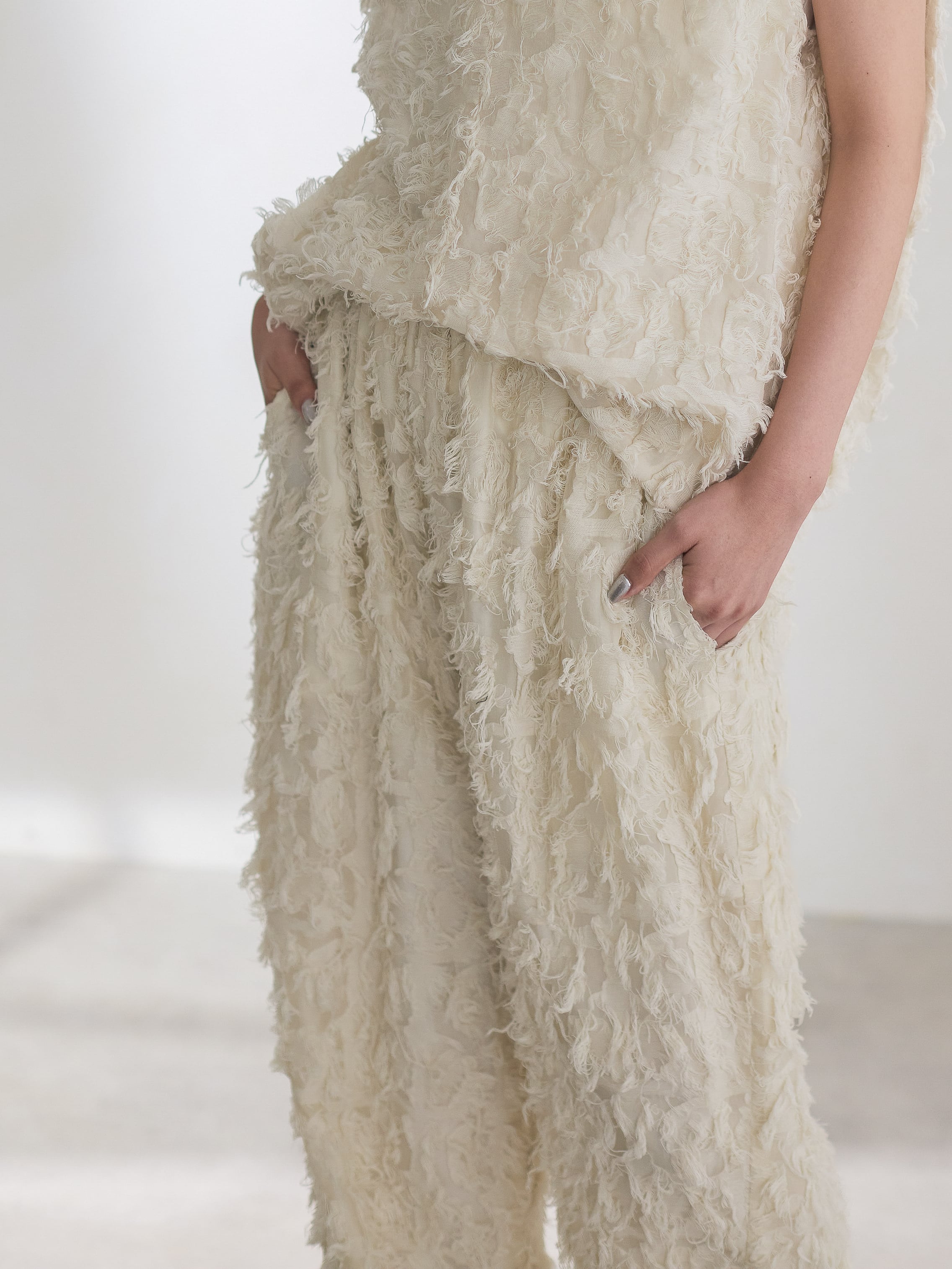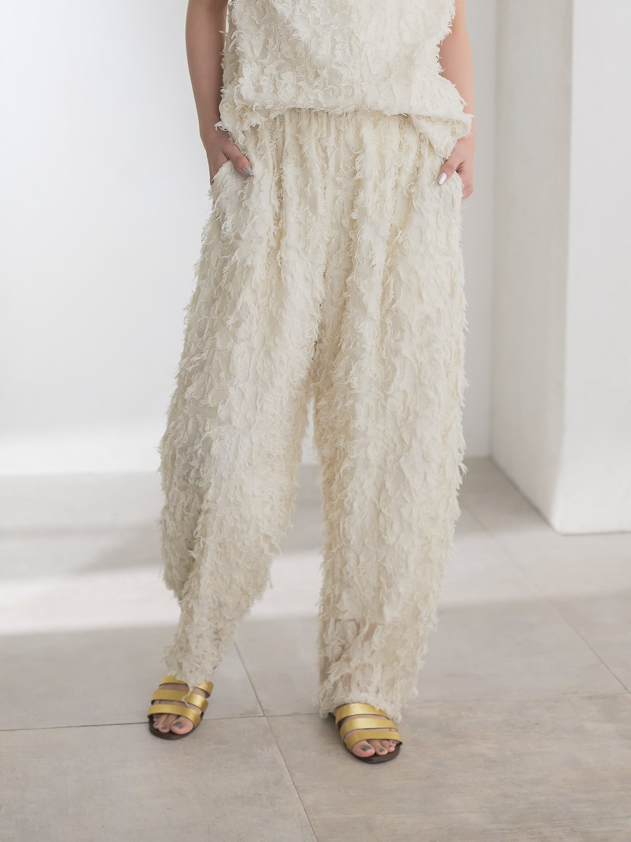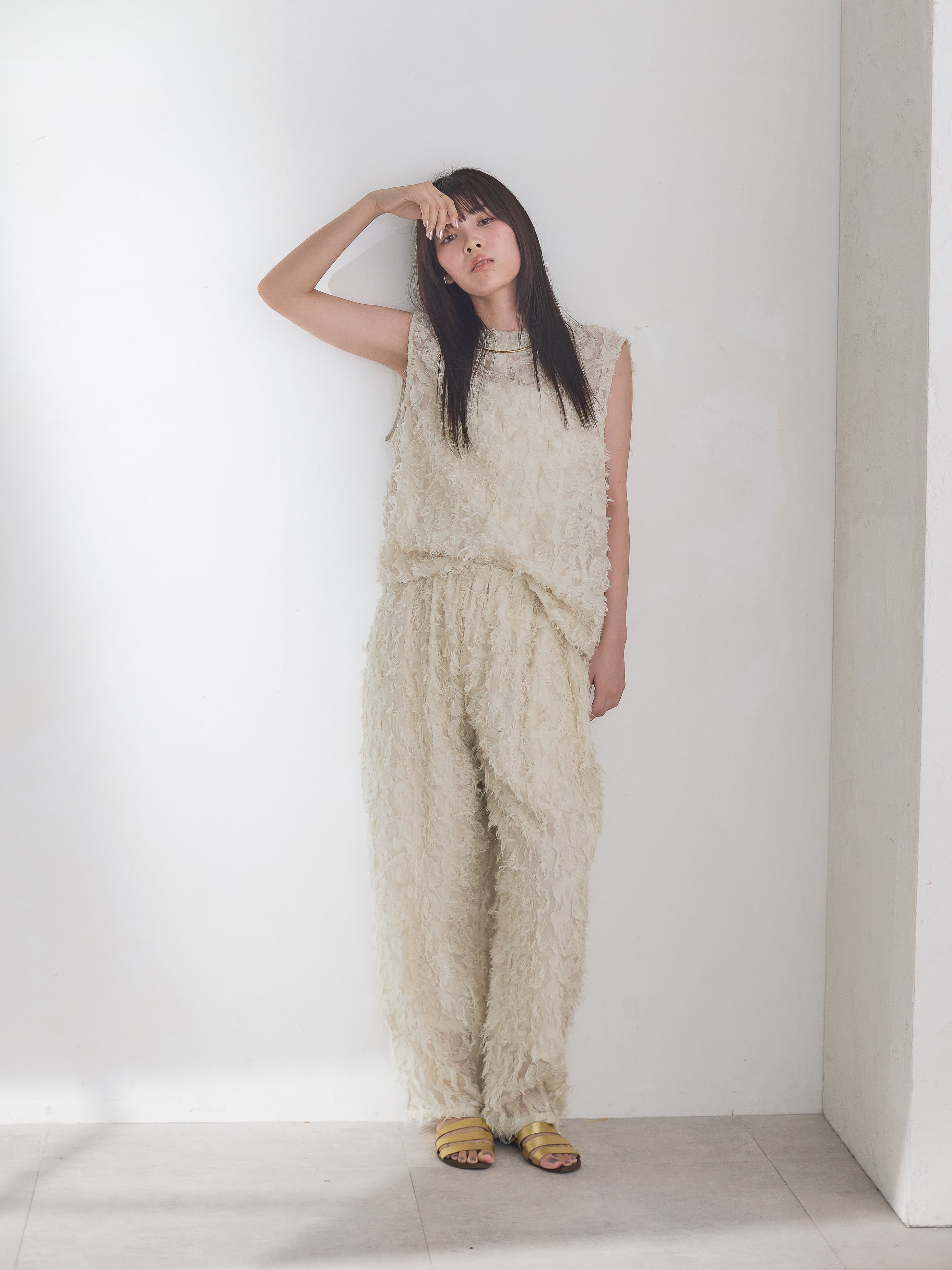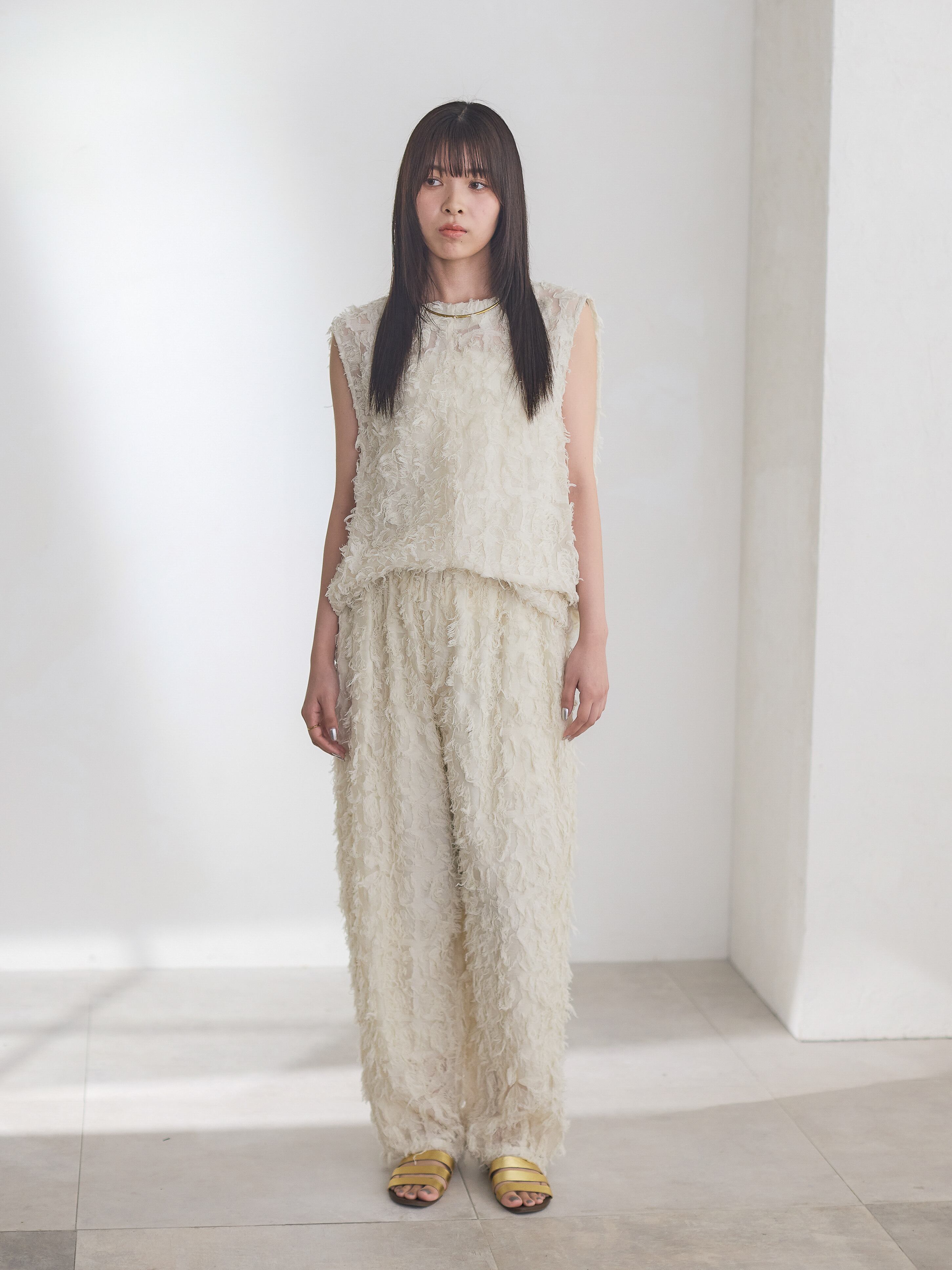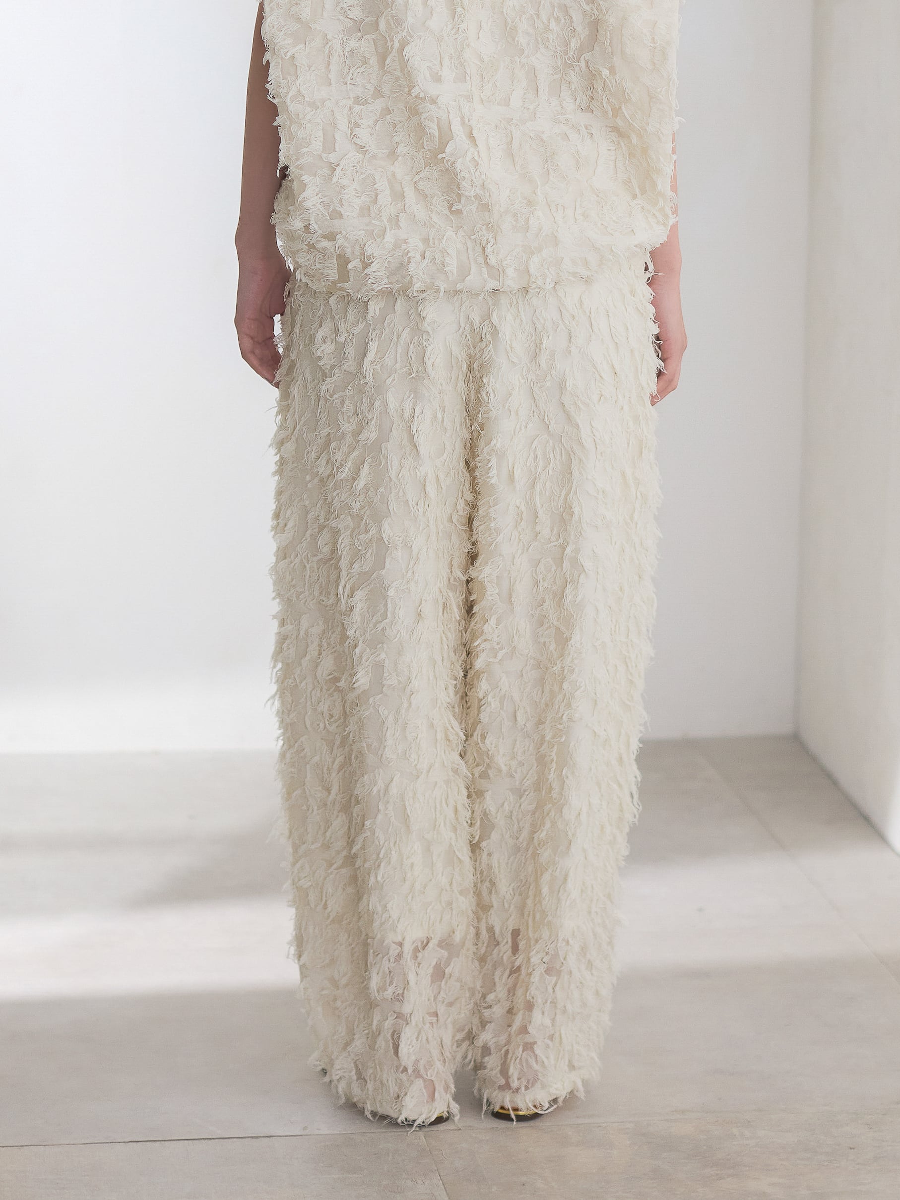 ナチュラルな素材感が特徴的なカットジャガードを使用したカーブパンツ。