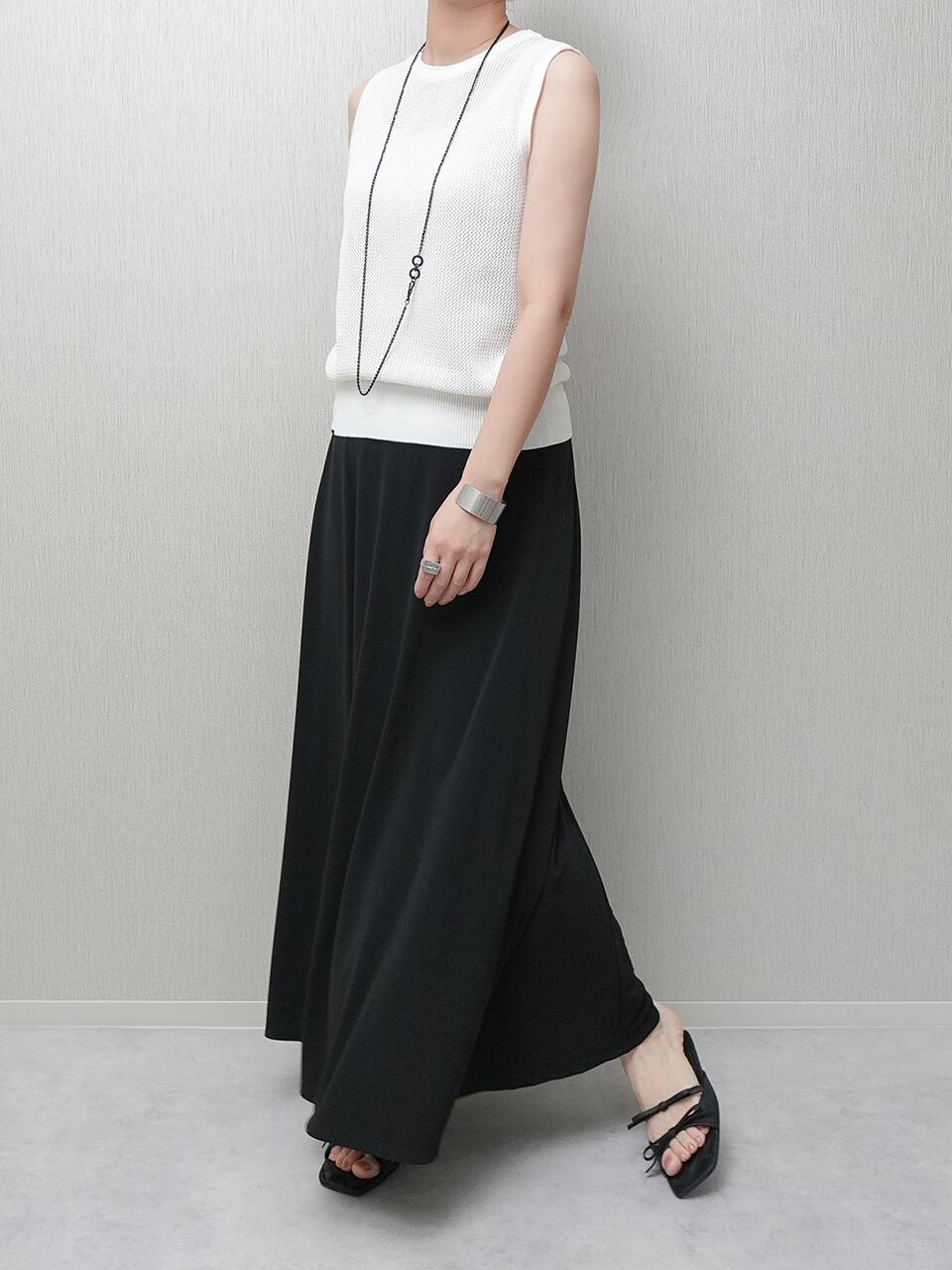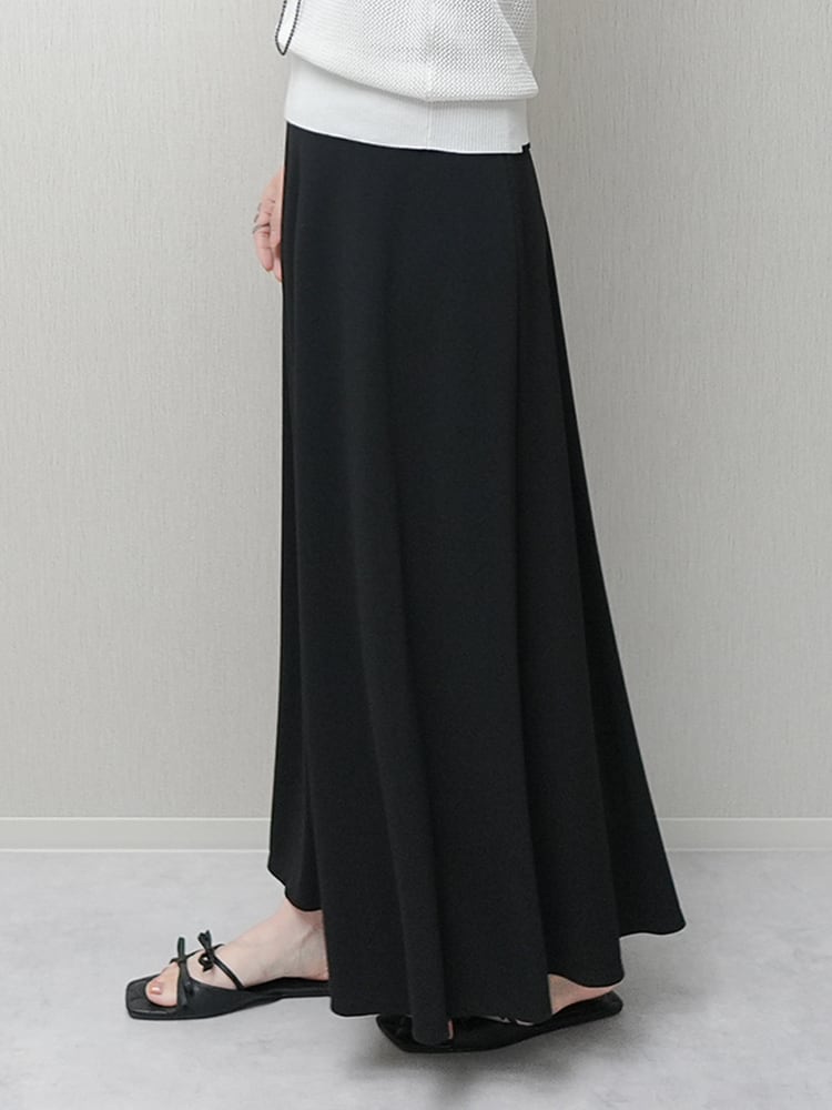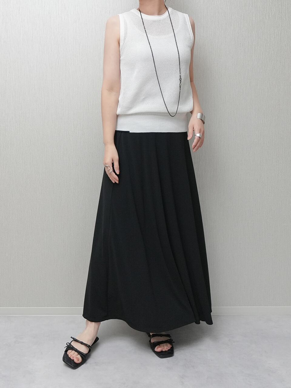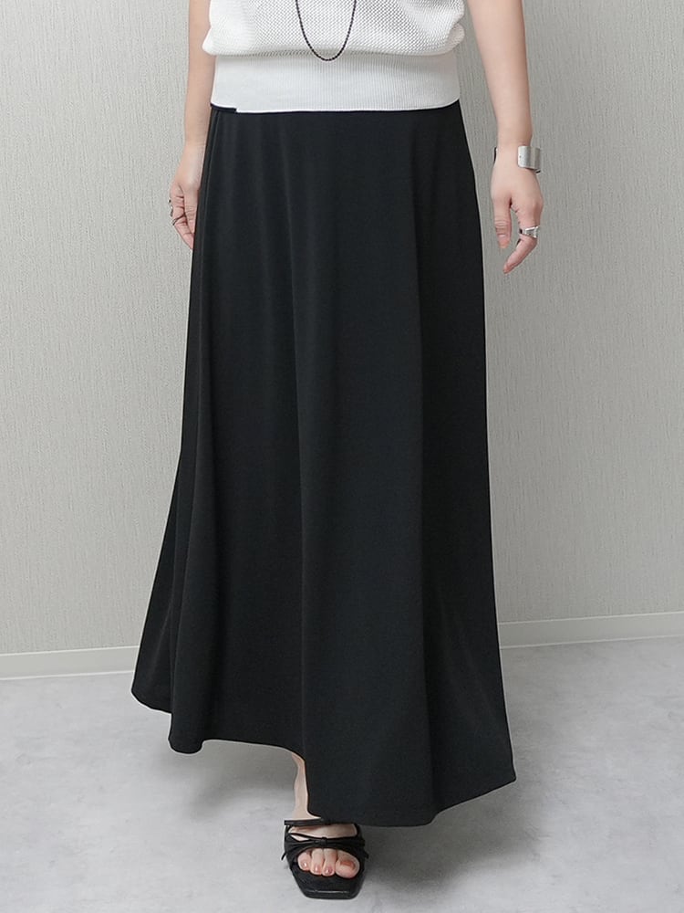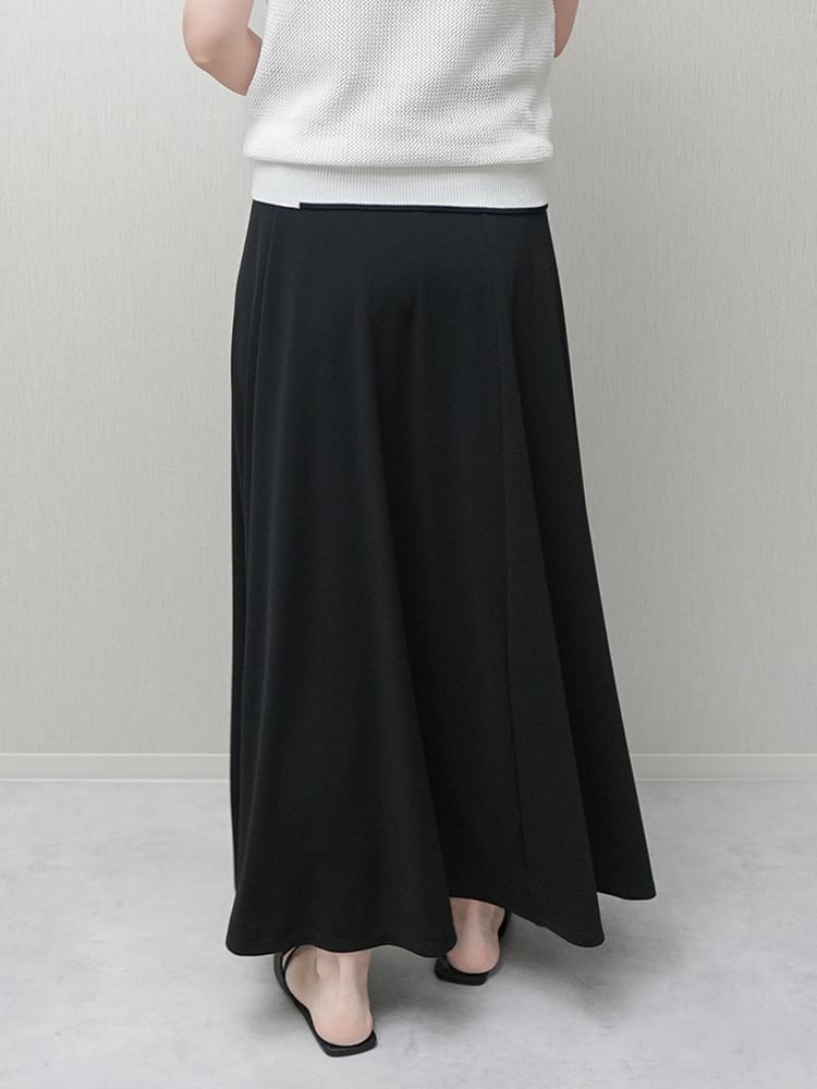 吸汗速乾素材ペオスジャージを使用した、フレアロングスカート。